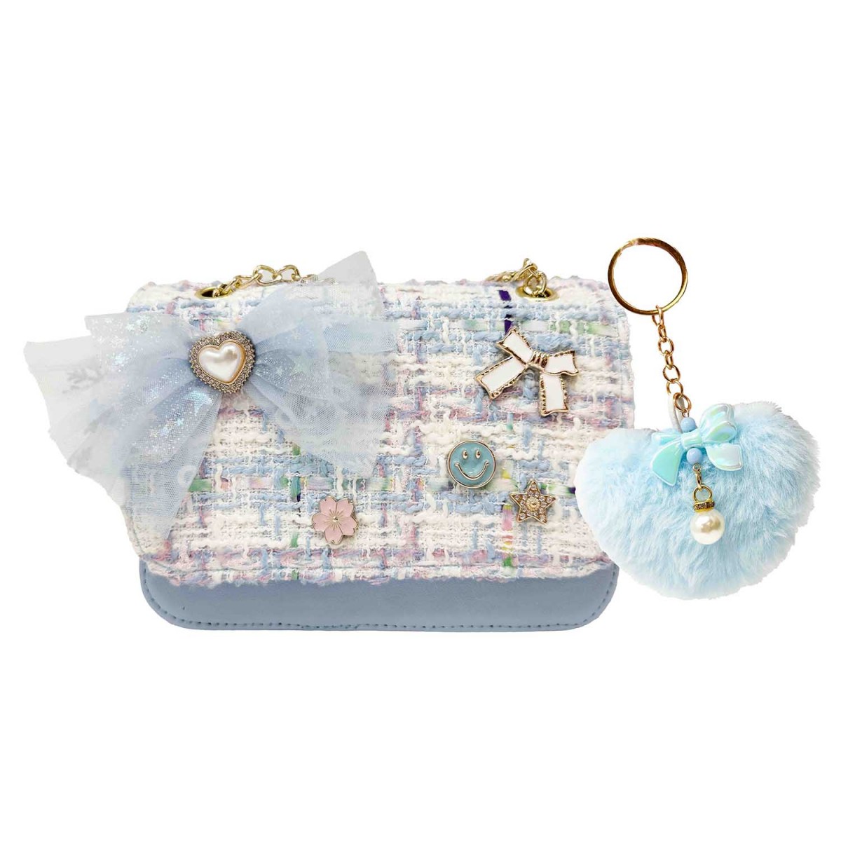 <div class="k_page_pozycja_left_info_element"> <div class="opis"> <div class="item item-6"> <div class="item item-6"> <p>Elegancka torebka typu crossbody z tweedu ozdobiona kokardą z cekinów, zawieszką (pluszowym brelokiem) w kształcie serca i łańcuszkiem. Kwiatowe akcenty i zabawne detale nadają jej stylowy i fantazyjny wygląd. Pomieści niezbędne akcesoria małej miłośniczki mody i trendów. Idealna na imprezy, jako prezent lub na co dzień. Zapinana na magnetyczny zatrzask.</p> <p>Kolor: odcienie niebieskiego.</p> <p>Wiek: 5+</p> <p>Wymiary: 19,5 x 13,5 x 7 cm.</p> <p></p> </div> <div class="item item-12"></div> </div> </div> </div>