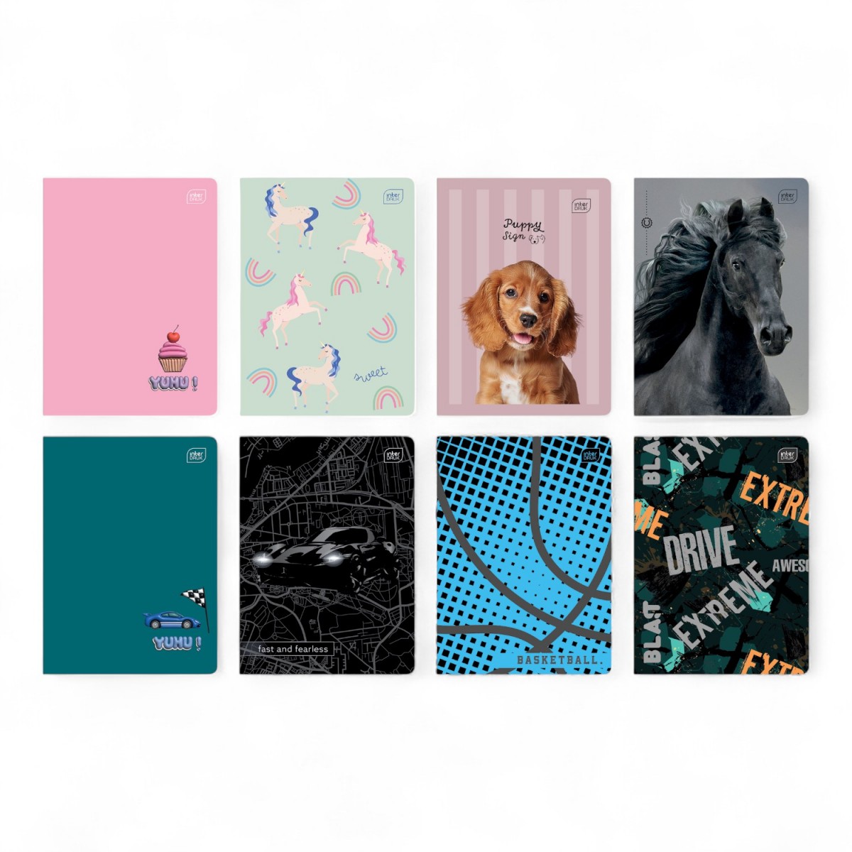 • <p>Format: A5.<br />Liczba kartek: 32.<br />Zadruk w linię.<br />Zaokrąglone rogi.<br />Elegancka strona adresowa.</p>