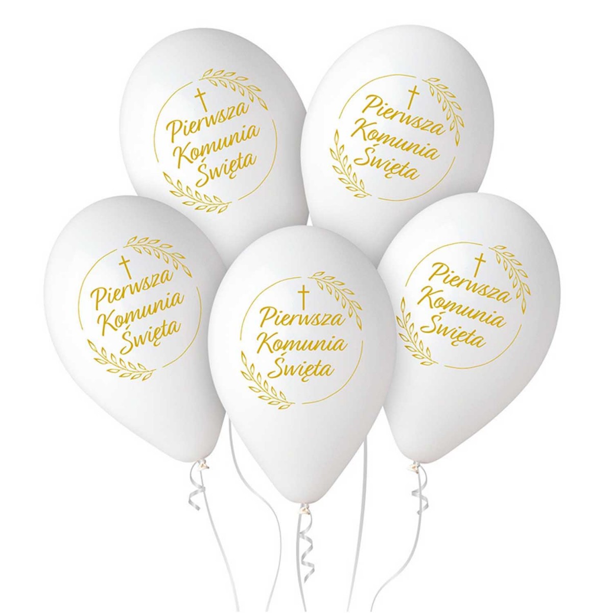 <ul> <li><b>Rozmiar producenta:</b> GMS110</li> <li><b>Rozmiar w calach:</b> 12”</li> <li><b>Rozmiar w centymetrach:</b> 30 cm</li> <li><b>Kształt:</b> klasyczny</li> <li><b>Kolor:</b> biały</li> <li><b>Nadruk:</b> Pierwsza Komunia Święta</li> <li><b>Materiał:</b> 100% Lateks</li> <li><b>W opakowaniu:</b> 5 szt.</li> <li><b>Producent:</b> Gemar</li> </ul>