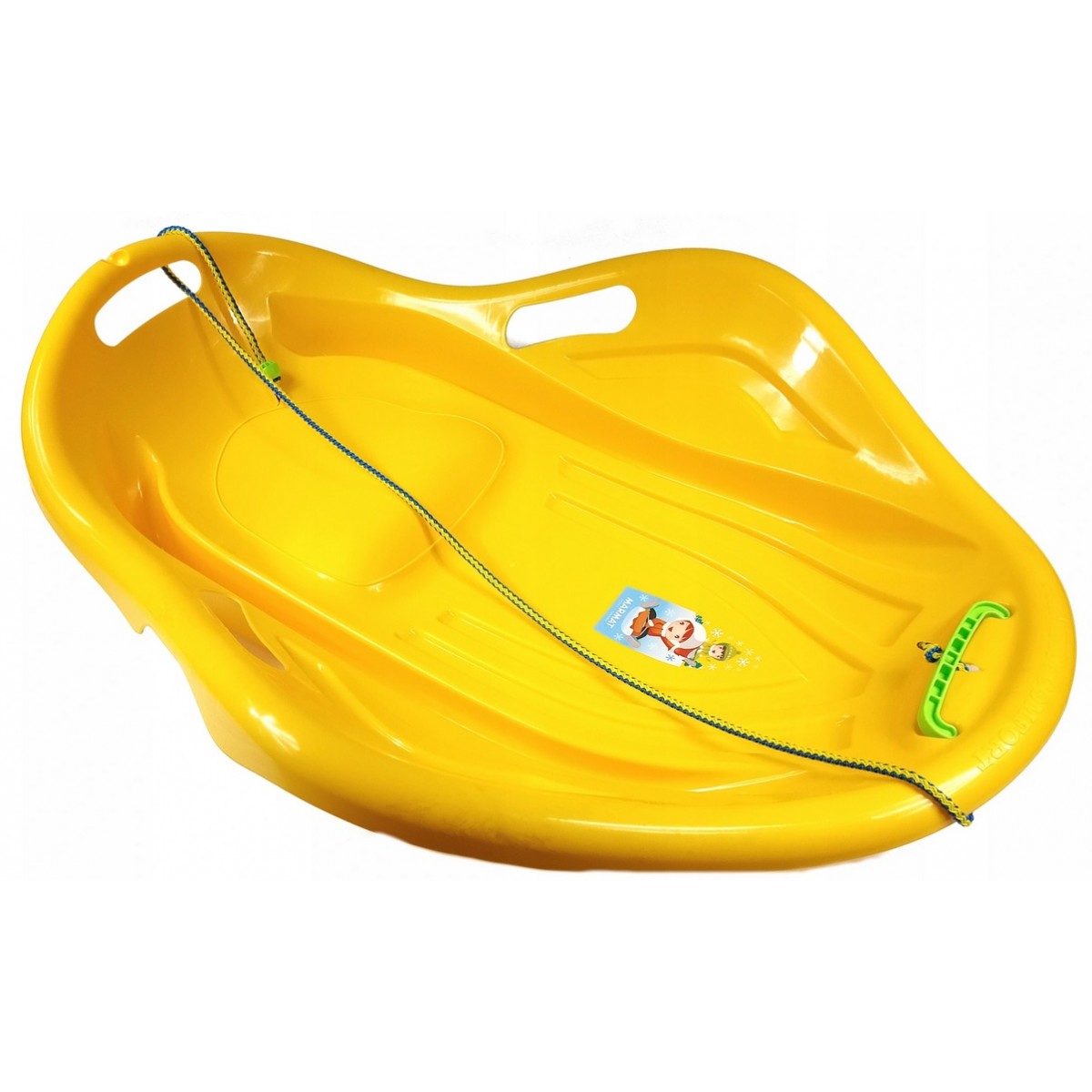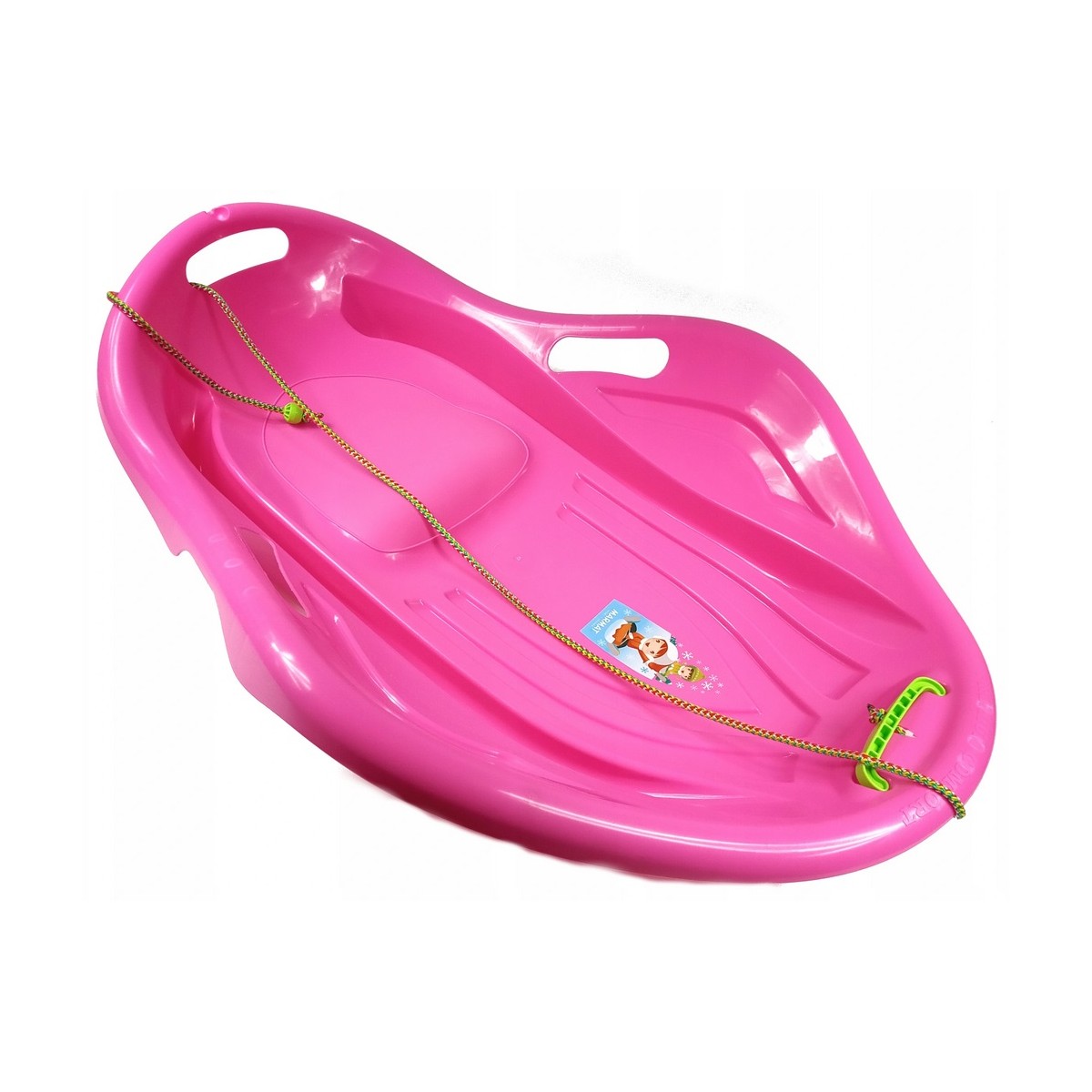 Komfortowe głębokie sanki z nowatorskim rozwiązaniem mocowania linki, odpowiednio wyprofilowane boki sanek chronią dłonie i nogi użytkownika, opływowe kształty i precyzja wykonania zapewniają bezpieczeństwo i świetną zabawę na śniegu. Dostępne w pięciu kolorach. Przeznaczone dla dzieci w wieku od 3 do 7 lat.