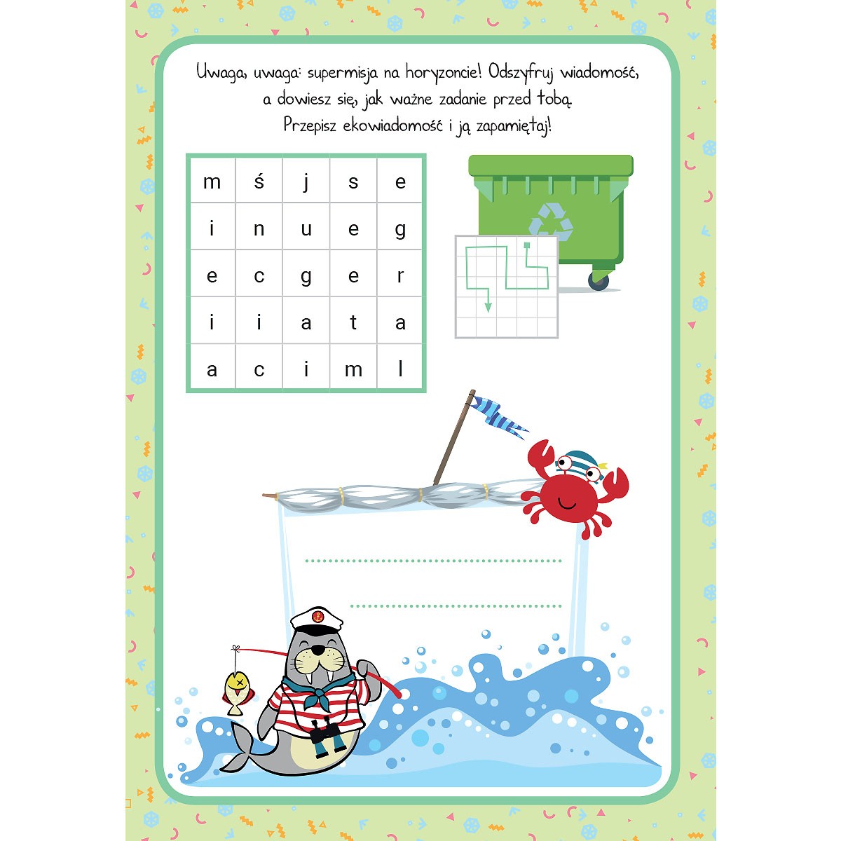 Niezbędnik każdego ekobohatera! W walce o dobro planety nie jesteś sam – u twojego boku stają ekozwierzaki. Zebrane przez nie ekozasady i ekozabawy uwrażliwiają na delikatność przyrody, przestrzegają przed nieodwracalnością zmian i pokazują, jak dbać o środowisko w myśl zasady: odpowiednio wrzucaj – byle gdzie nie wyrzucaj!
