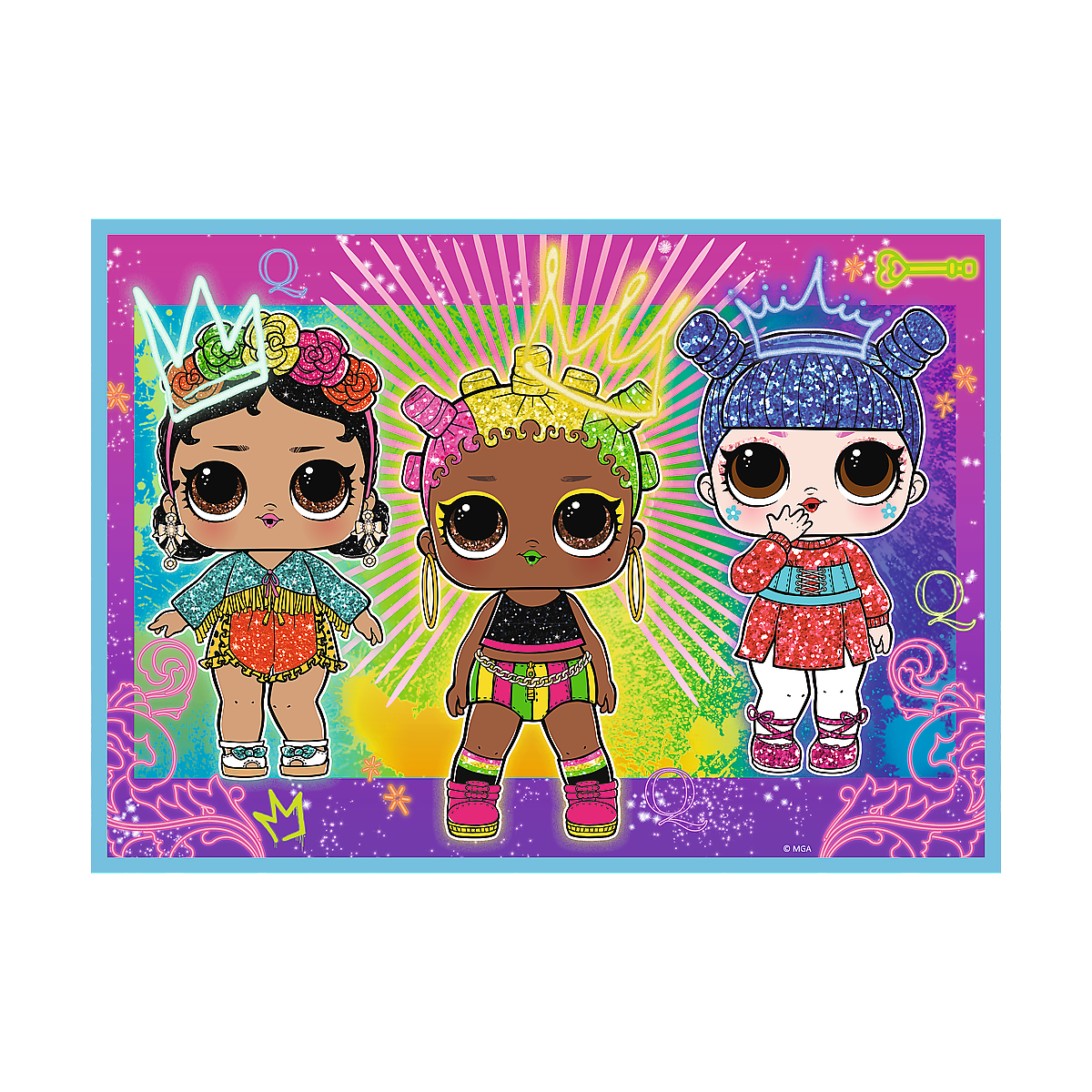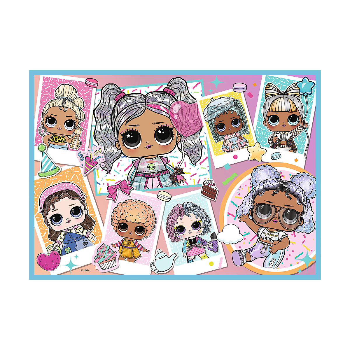 To puzzle dla dzieci składające się z 4 niezależnych układanek, zaprojektowane z myślą o wszystkich fanach i fankach L.O.L. Po ułożeniu puzzli powstaną cztery obrazki o wymiarach 285 x 200 mm każdy. Zróżnicowana liczba elementów (35, 48, 54, 70) pozwala na zabawę zarówno młodszym, jak i nieco starszym fanom puzzli. Zestaw doskonale spełnia oczekiwania rodzeństwa - każdy ułoży swój ulubiony obrazek nawet w tym samym czasie. Zróżnicowana liczba elementów pozwala na zabawę zarówno młodszym, jak i nieco starszym dzieciom. Do produkcji puzzli użyliśmy materiałów ekologicznych i papieru eliminującego odbijanie światła, co gwarantuje bezpieczeństwo i radość zabawy.