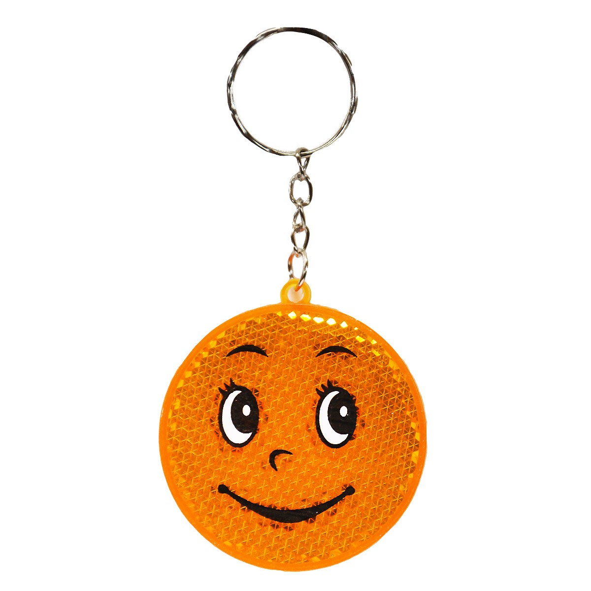 Breloczek jest okrągłym odblaskiem w motywem emotki.