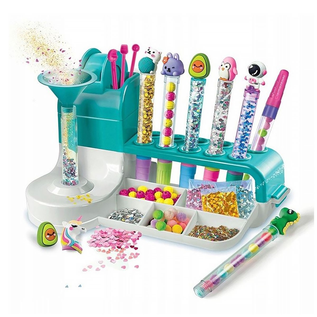 Oryginalne kreatywne laboratorium do zabawy przy tworzeniu mnóstwa kolorowych długopisów! Nowy zestaw Idea, który pozwala dzieciom tworzyć i personalizować długopisy za pomocą wielu akcesoriów i dekoracji. Podręczny blat do ćwiczeń i bogaty zestaw instrumentów wspomagających zabawę daje niesamowity efekt! Dzieci będą mogły zrobić znacznie więcej niż tylko personalizację długopisu: zaangażują się w prawdziwy twórczy wysiłek! Opracowany i zaprojektowany we Włoszech.