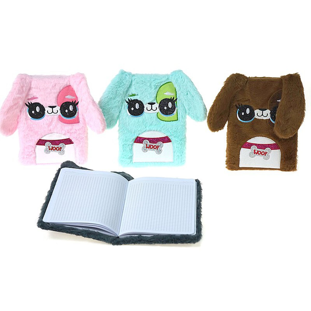 Piękny pluszowy notes w kształcie pieska z uszkami. Idealnie sprawdzi się jako notatnik, mały szkicownik lub nawet pamiętnik!