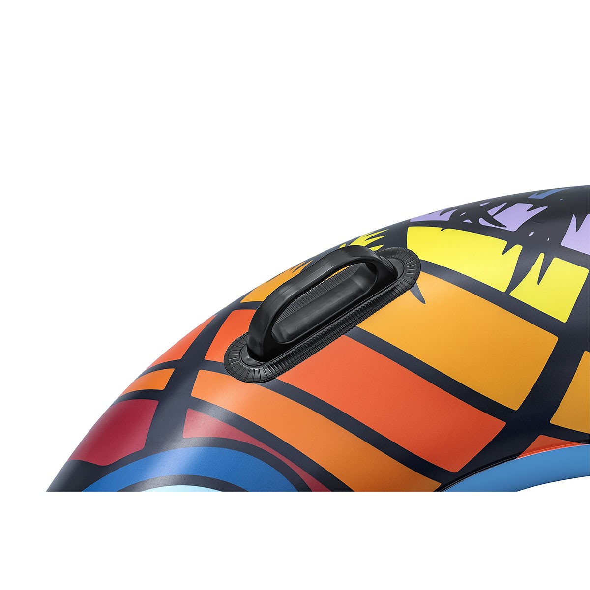 Koło wykonane jest z wytrzymałego materiału PCV. Jest lekkie i poręczne. Nie zajmuje wiele miejsca i nie wymaga pompki do pompowania, co sprawia że można go zabrać w dowolne miejsce.