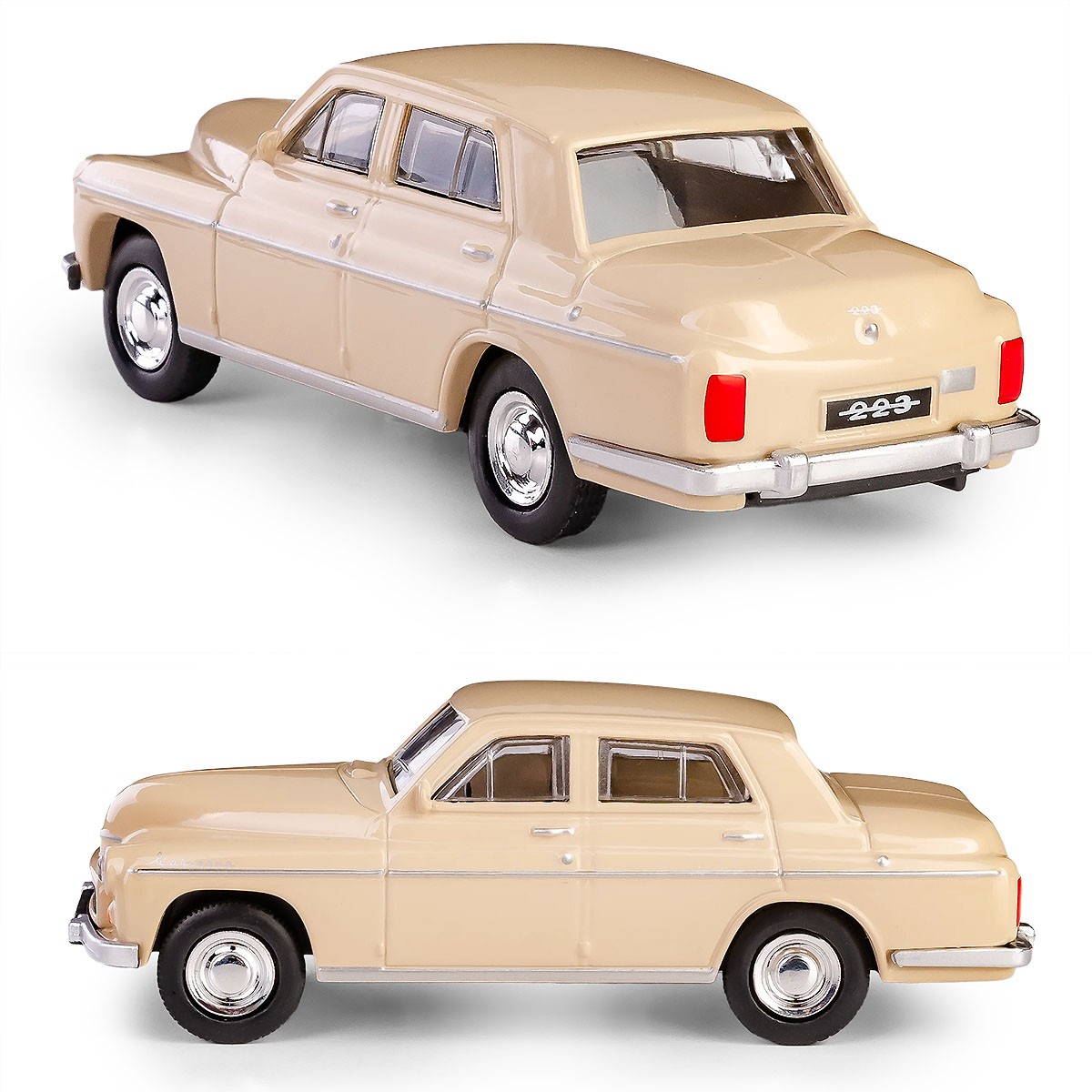 W 1961 roku skonstruowano trzy prototypy Warszawy z nadwoziem typu sedan. Była to modernizacja Warszawy M-20 (i późniejszych wersji). Zmieniono tylną części nadwozia oraz konstrukcję dachu. Dwie kanapy pokryte skajem i tkaniną zapewniały wysoki komfort podróży. Produkcję rozpoczęto w 1964 roku. Od 1970 roku montowano czterobiegową ręczną skrzynię biegów z dźwignią zamontowaną w podłodze. Tak wyposażone egzemplarze trafiały głównie na eksport (rynek kolumbijski). Równocześnie montowano także skrzynię 3-biegową. Początkowo model ten był oznaczony liczbą 203, jednak po proteście firmy Peugeot (miała zastrzeżone dla oznaczeń swoich aut trzycyfrowe liczby z zerem pośrodku) zmieniono na 223.