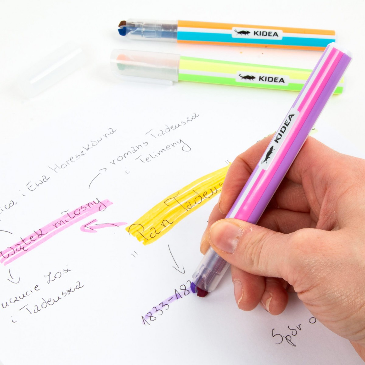 Dzięki swojej konstrukcji zakreślacz jest niezwykle kompaktowy. To produkt idealny dla wielbicieli minimalizmu i sprytnych rozwiązań. Zakreślacze wzbogacą notatki intensywnymi kolorami, sprawdzą się do kolorowania oraz rysowania zwariowanych rysunków z podwójną linią.
