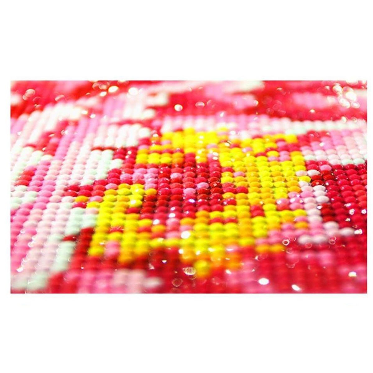 2. Płótno pokryte jest warstwą kleju, który umożliwia przyklejanie diamencików. Pamiętaj aby odklejać folię ochronną tylko z tego fragmentu płótna który będziesz wypełniać diamencikami. Folię odklejaj stopniowo wraz z kolejnych elementów dzięki czemu unikniesz wyschnięcia kleju na pozostałej części płótna.