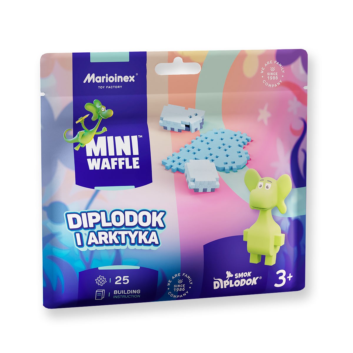 Zestaw Diplodok i Arktyka z serii Mini Waffle to 25 elementów, z których stworzysz fragment lodowej krainy, oraz figurkę przezabawnego smoka Diplodoka. To urocze stworzenie bez przerwy chce przeżywać przygody i odkrywać nowe kawałki świata… i chce to robić właśnie z Tobą!
