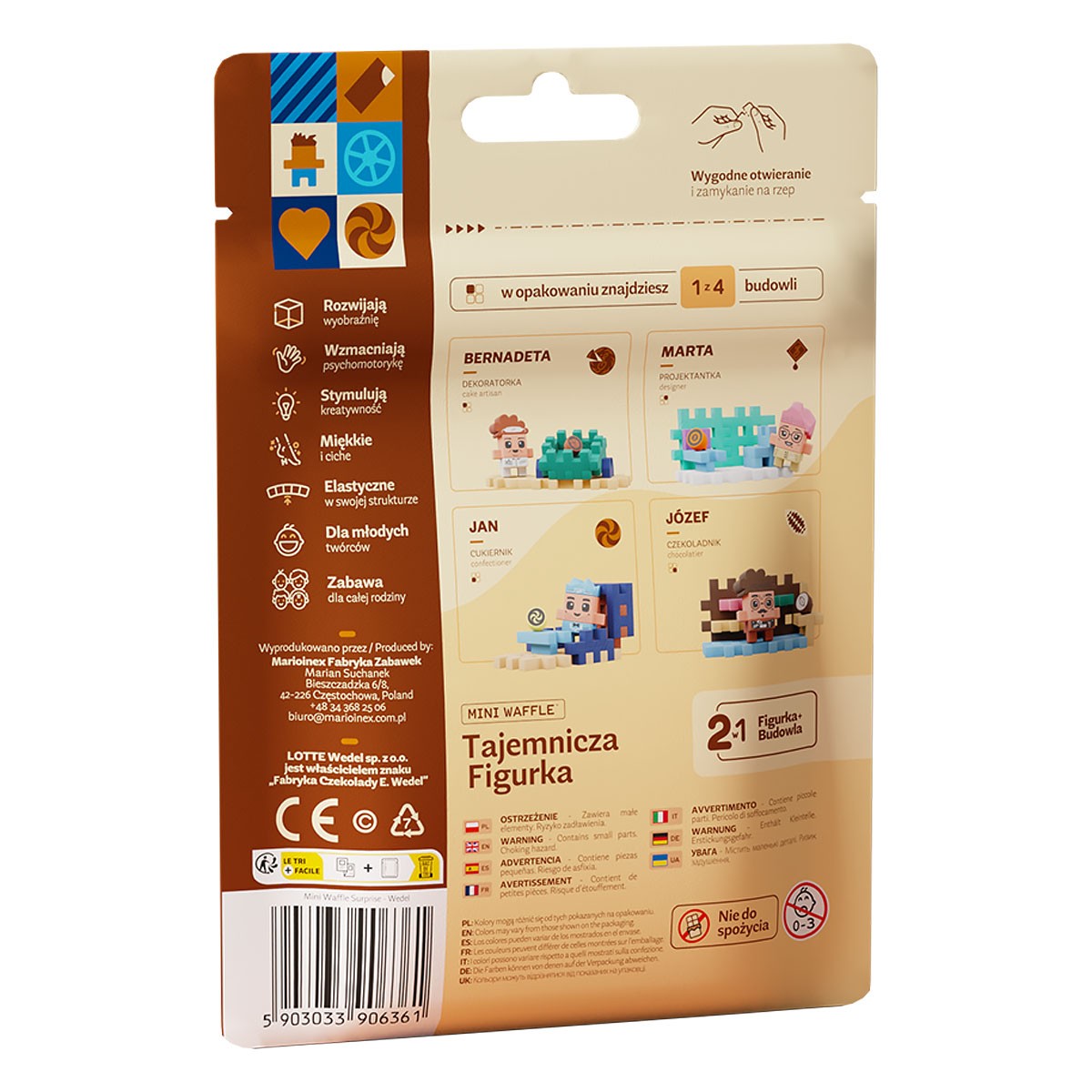 Mały zestaw Mini Waffle to 2 w 1 – znajdziesz tam figurkę związaną z produkcją czekolady Wedla i małą budowlę. Sprawdź, na który zestaw trafisz!