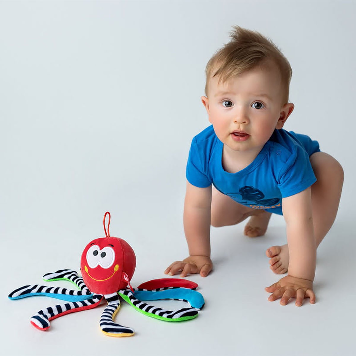 Mięciutka, materiałowa i kontrastowa ośmiornica handmade od Mom's care została stworzona z myślą o najmłodszych. Dziecko będąc w brzuchu, chwyta pępowinę. Macki ośmiornicy mają mu ją przypominać. Kiedy potrzesz ośmiornicę o swoją skórę i położysz ją obok swojego maleństwa wzbudzisz w nim poczucie bezpieczeństwa i komfortu. Ośmiornica przypomina także maluszkowi o ostatnich 9 miesiącach spędzonych w brzuchu mamy.