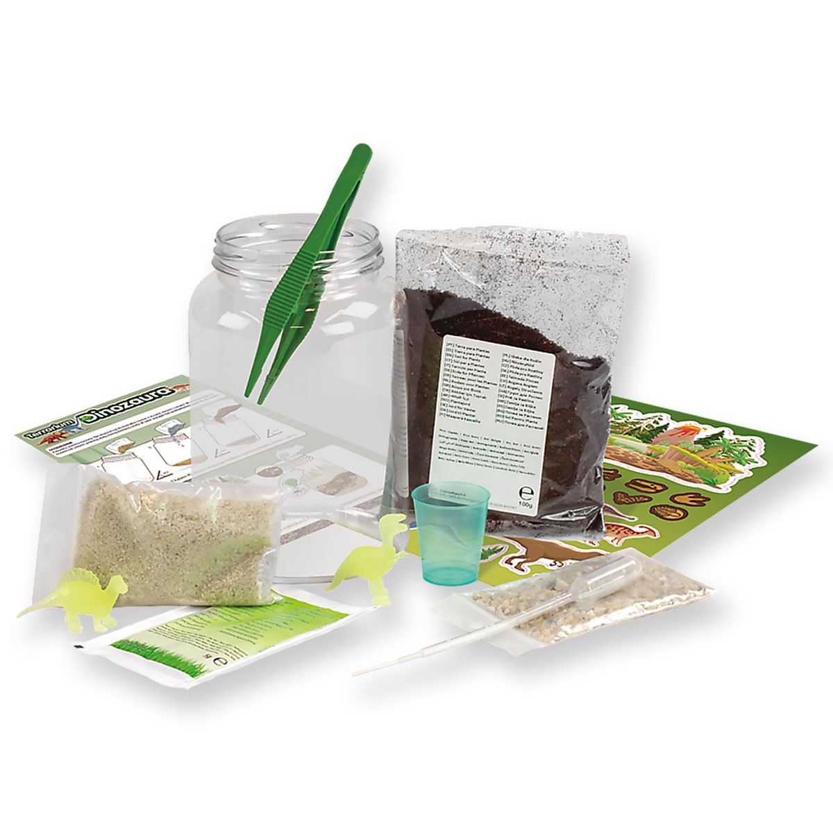 Posadź roślinność, podlewaj ziemię i obserwuj, jak kiełkują nasiona. Udekoruj terrarium naklejkami, włóż do środka figurki dinozaurów, zgaś światło i zobacz, jak świecą w ciemności! Poznaj ciekawe fakty o dinozaurach i dowiedz się, jakie rośliny i zwierzęta istniały w okresie jurajskim.