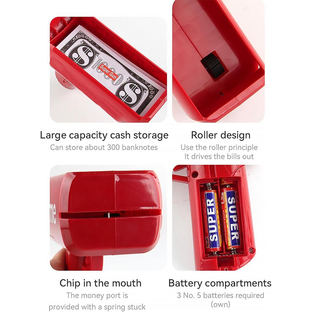 Wykonany z wysokiej jakości bezpiecznego materiału ABS. Doskonały do dystrybucji pieniędzy, ulotek, kuponów, a nawet wizytówek. Świetna zabawka ożywiająca na wesela, wieczory kawalerskie lub panieńskie, przyjęcia urodzinowe, kluby nocne itp.
