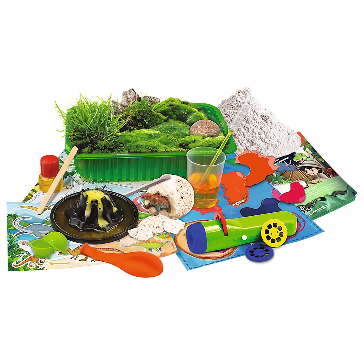 Wykop własnego dinozaura, stwórz kolekcję skamieniałości i przeprowadź erupcję wulkanu. Skorzystaj z dołączonej latarki, aby wyświetlać na ścianie niesamowite zdjęcia prehistorycznych gadów.
