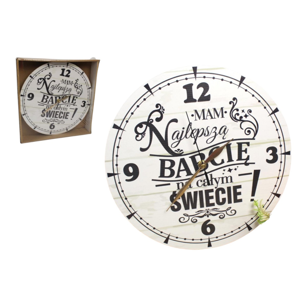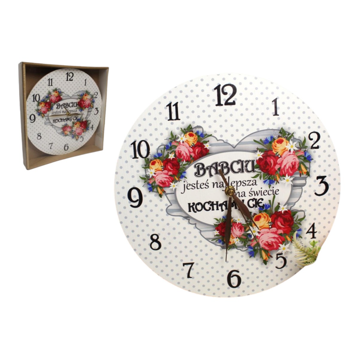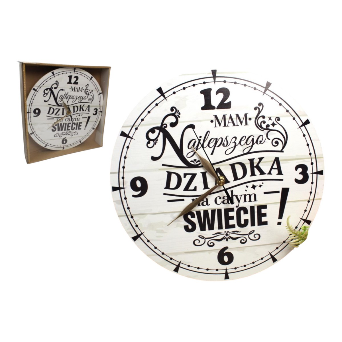 Piękny zegar wykonany z płyty MDF i zabarwionym na biało z grafiką. Piękne napisy wyznające najgłębsze uczucia, które kierujemy dla kochanych dziadków! Zegar posiada mały haczyk, dzięki któremu Dziadzio może powiesić go gdzie tylko chce - w salonie, sypialni lub kuchni.