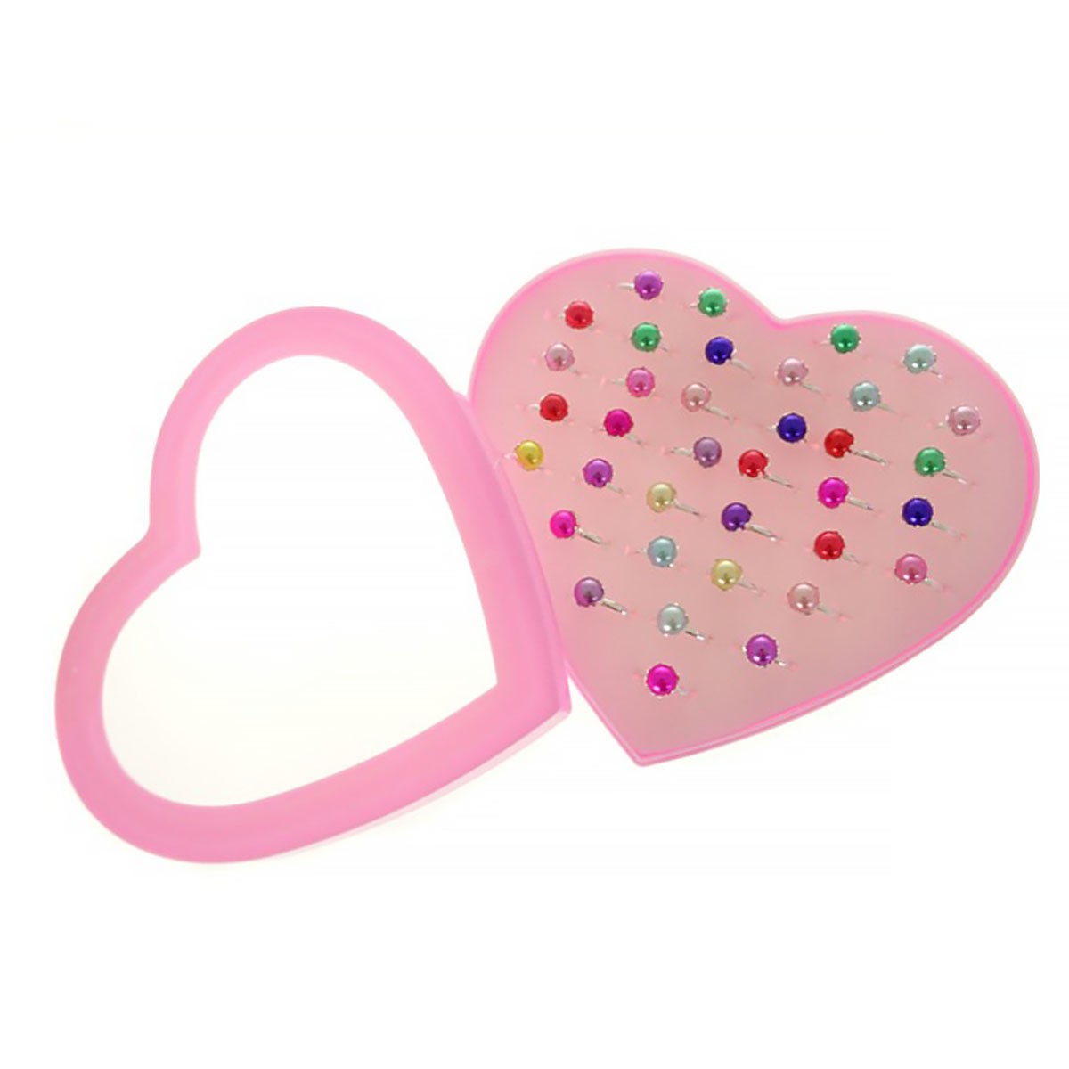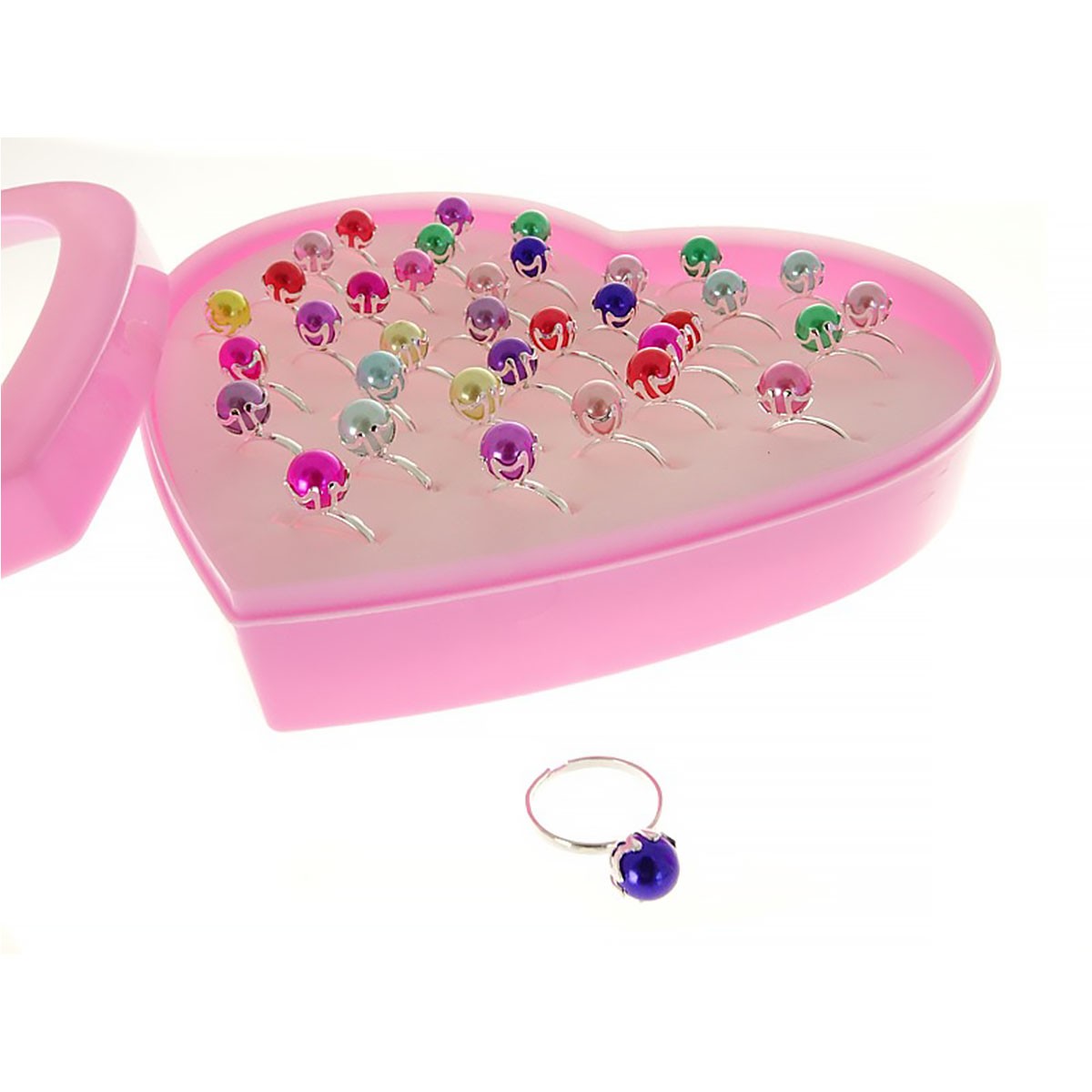 Zestaw 36 pierścionków, regulowane w plastikowym etui - serce