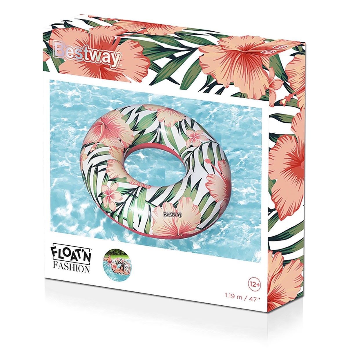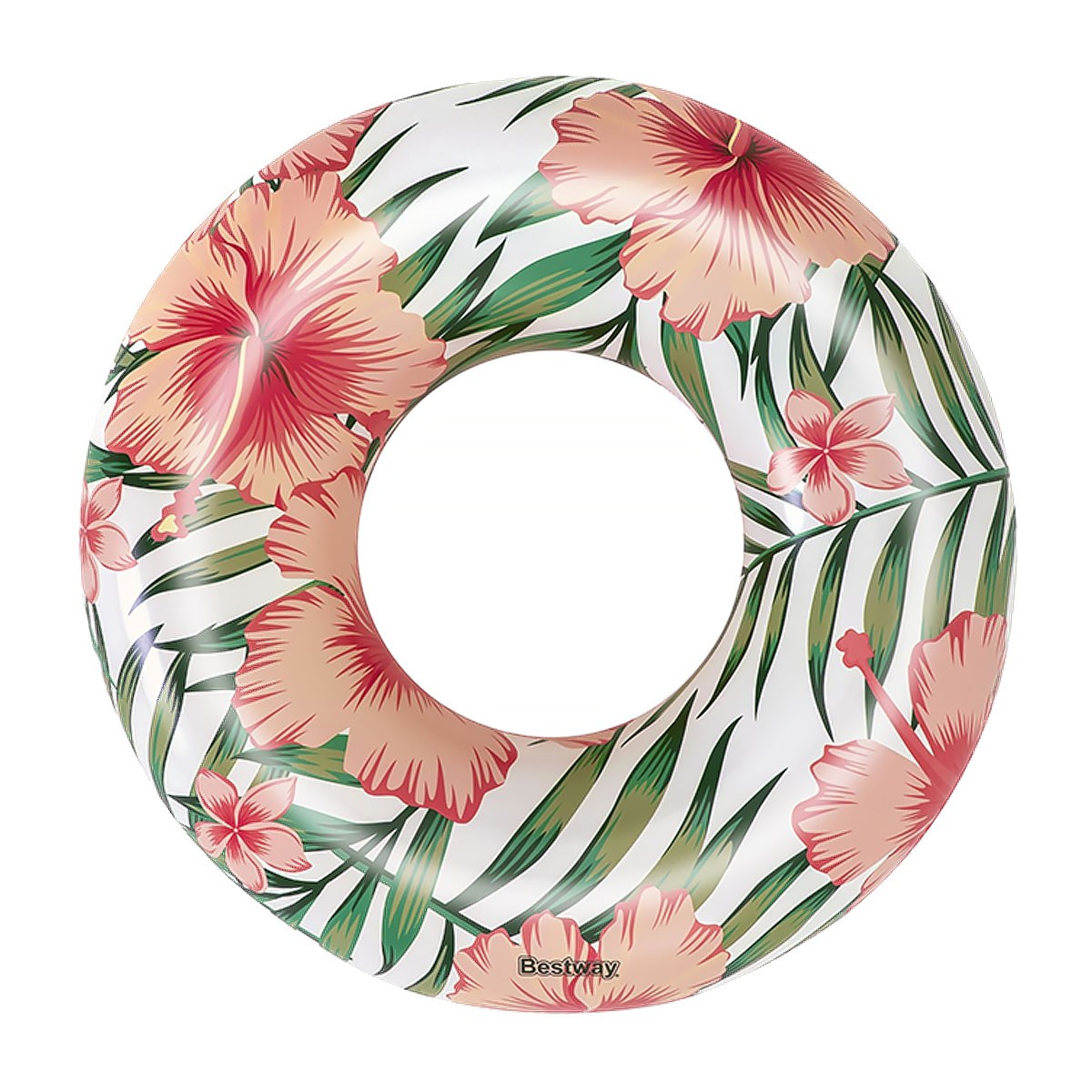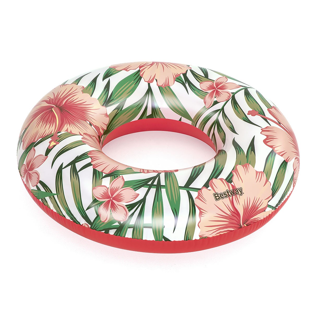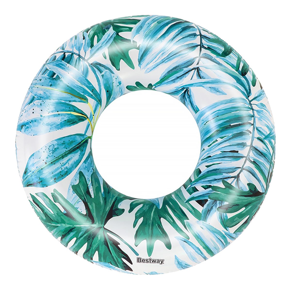 Kolorowe, dmuchane koło na basen. Zawór bezpieczeństwa uchroni przed niepożądanym otwarciem się spustu powietrza. Koło wykonane jest z wytrzymałego materiału PCV. Jest lekkie i poręczne. Nie zajmuje wiele miejsca i nie wymaga pompki do pompowania, co sprawia że można go zabrać w dowolne miejsce.
