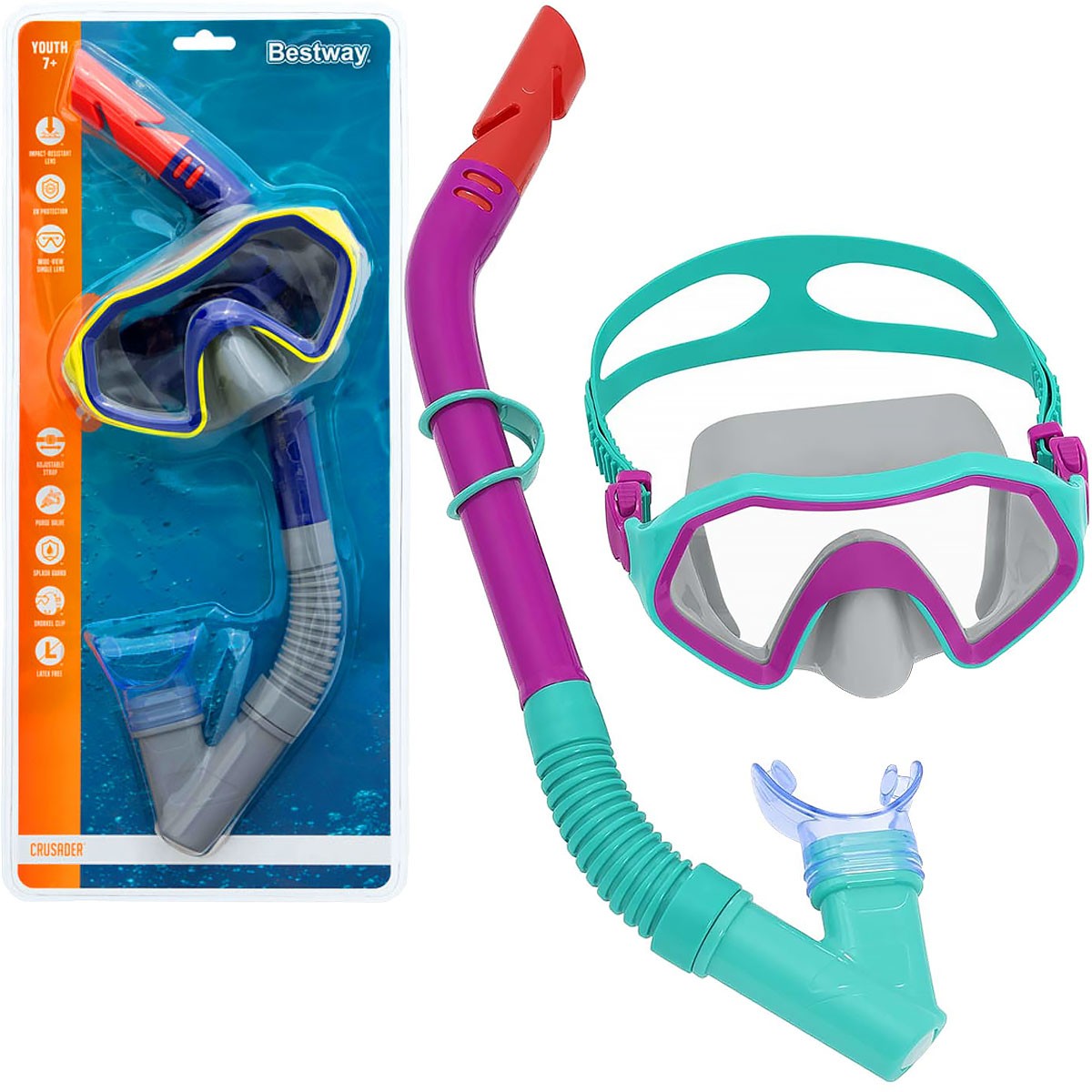 Kapitalny komplet dla młodego nurka maska i rurka Hydro Swim z firmy Bestway, pozwoli na zwiedzanie podwodnego świata dzieciom od 7 roku życia. Uniwersalna z maska z regulowanym paskiem bez problemu będzie mogła być dopasowana do głowy dziecka, rurka z wygodnym, silikonowym ustnikiem zapewni komfortowe oddychanie podczas pływania. Maska z poliwęglanowymi soczewkami zapewni czysty obraz pod wodą.