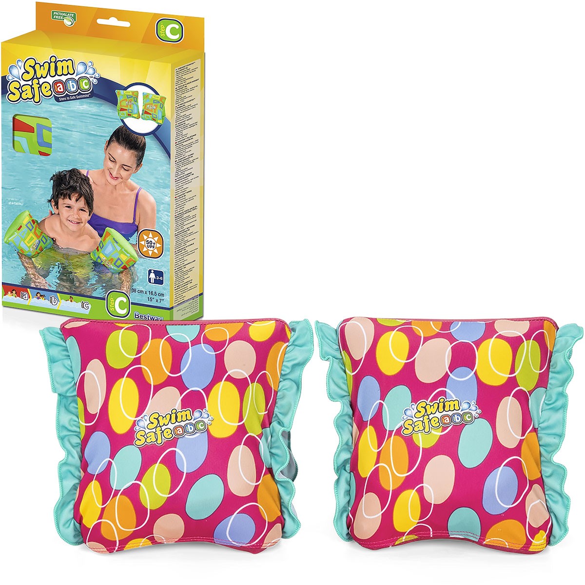 Kolorowe rękawki dla dzieci do pływania. Posiadają zaworek, który zabezpiecza przed uchodzeniem powietrza.
