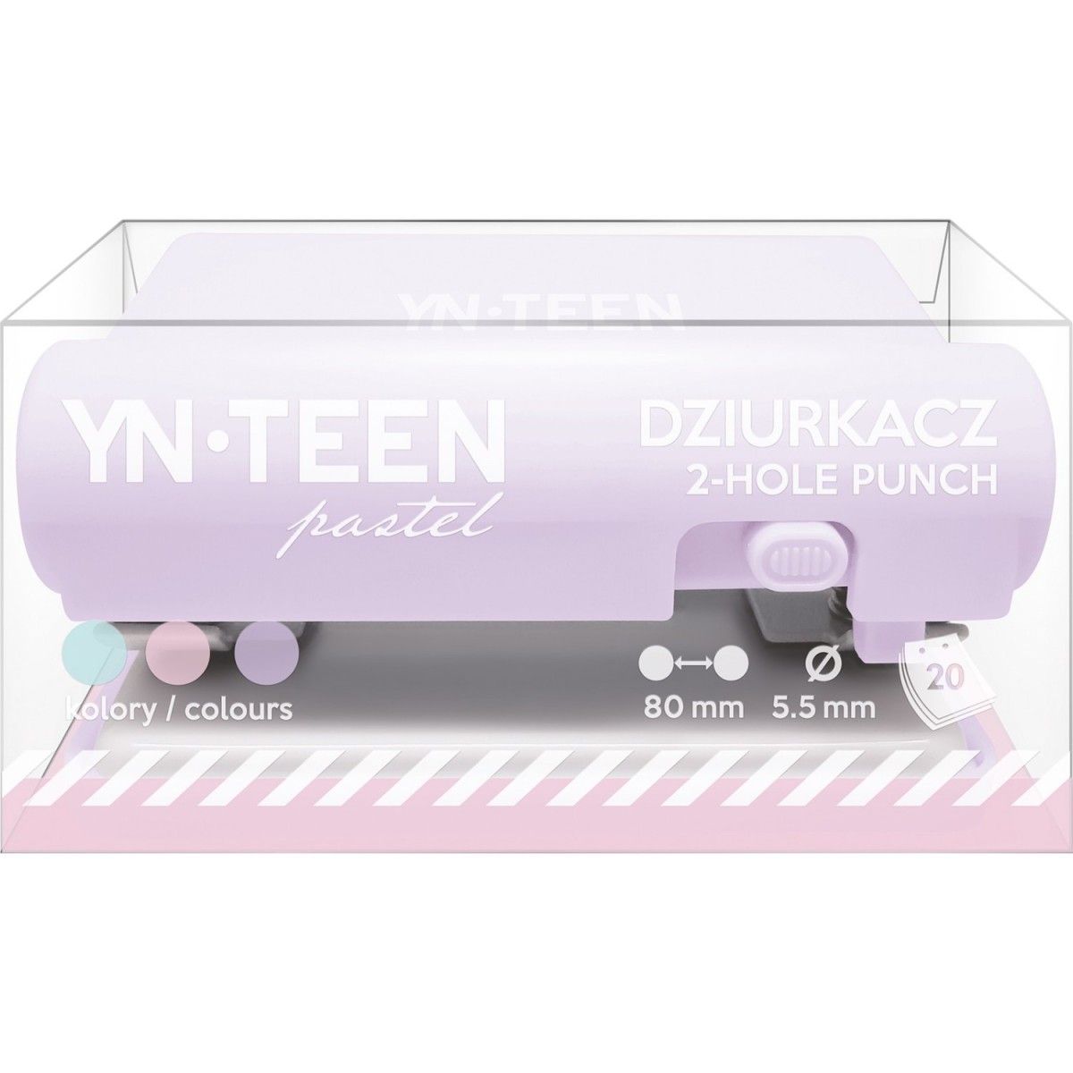 Dziurkacz o satynowej obudowie w 3 pastelowych kolorach do wyboru. Dziurkuje do 20 kartek. Średnica otworów: 5.5 mm. Wyposażony w wysuwany ogranicznik formatu i blokadę położenia dźwigni.