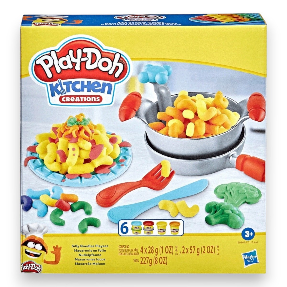 Wyobraźnia małych kucharzy nie zna granic dzięki zestawom do zabawy Play-Doh! Dzięki temu zestawowi maluchy będą mogły przygotować makaron. Wyciśnij zabawny makaron z Play-Doh za pomocą zabawkowego garnka, a następnie przekręć uchwyt, aby pokroić makaron. Użyj 4 stempli Play-Doh, aby stworzyć zabawne brokuły lub inne zabawkowe potrawy. Stwórz kolorowe menu z 6 zabawnych kolorów ciastoliny Play-Doh. Wyobraźnia to najlepszy składnik dla małych kucharzy z zestawami do zabawy Play-Doh Moja kreatywna kuchnia!