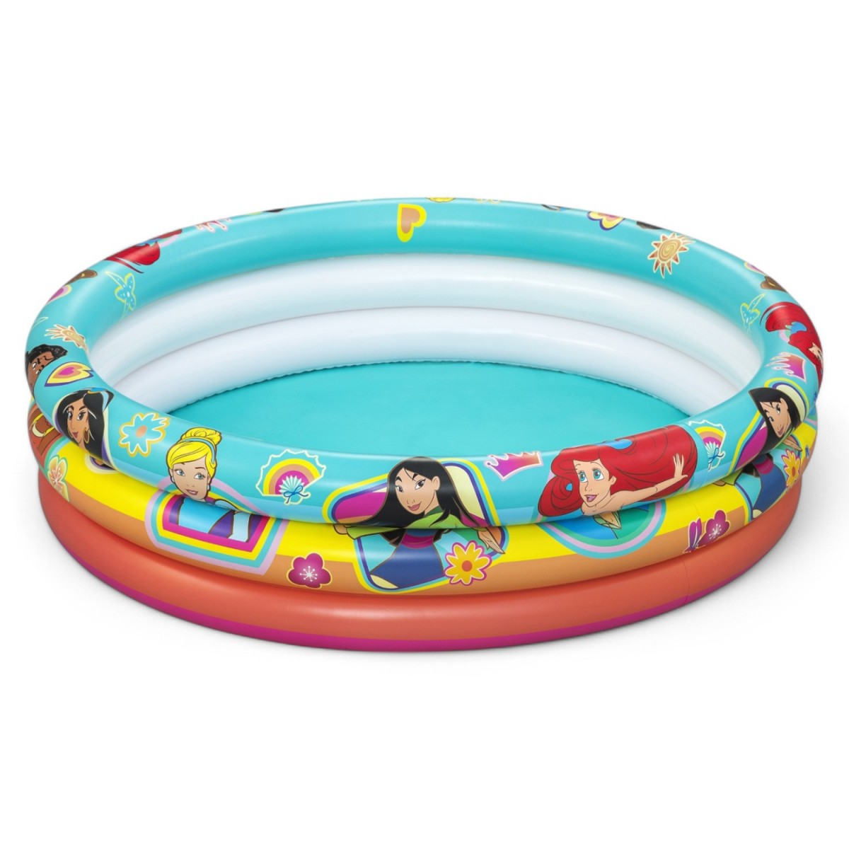 Basen składa się z 3 dmuchanych pierścieni, które zapewniają stabilną konstrukcję. Posiada żywą kolorystykę oraz blokadę przed upływem powietrza.