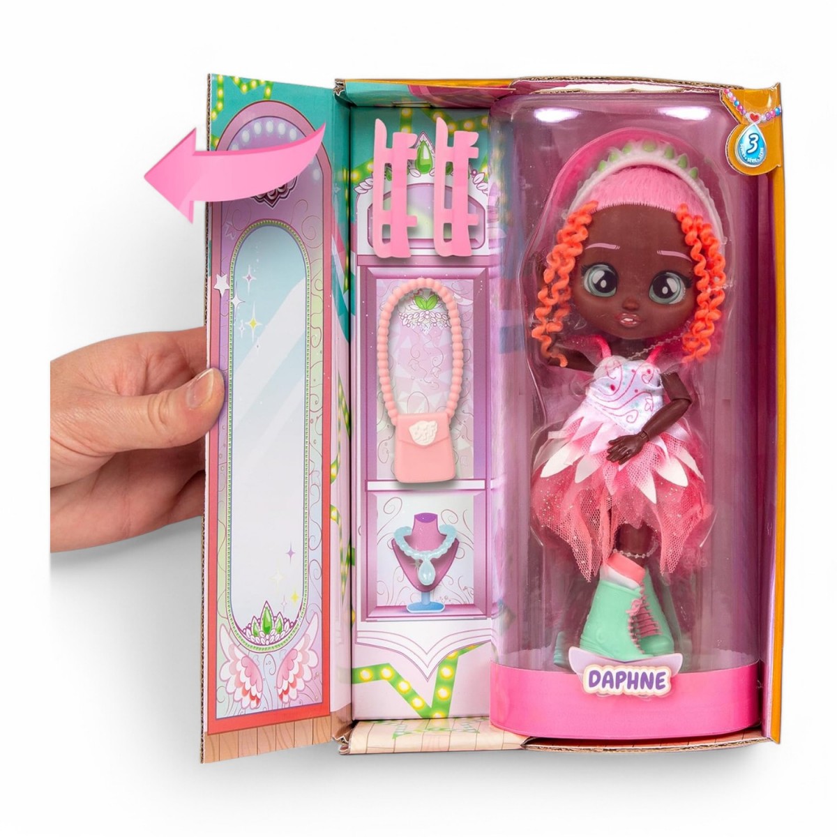Poznaj Daphne, baletową księżniczkę na lodzie z serii Cry Babies BFF Talents! Ta urocza lalka zachwyci Cię swoim wyjątkowym wyglądem inspirowanym światem łyżwiarstwa figurowego. Daphne ma kręcone, pomarańczowe włosy, duże zielone oczy i słodki uśmiech, który podkreśla jej charyzmę. Jej sukienka przypomina delikatne płatki kwiatów, a diadem na głowie dodaje jej blasku.