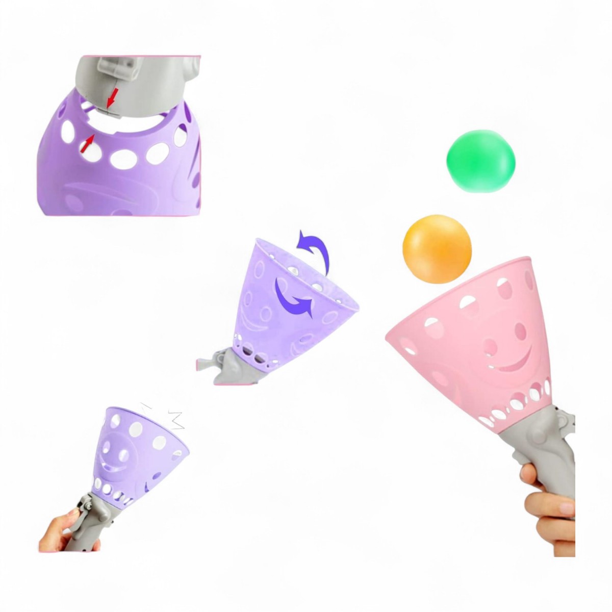 Gra polega na wyrzucaniu i łapaniu piłeczki za pomocą plastikowej wyrzutni.