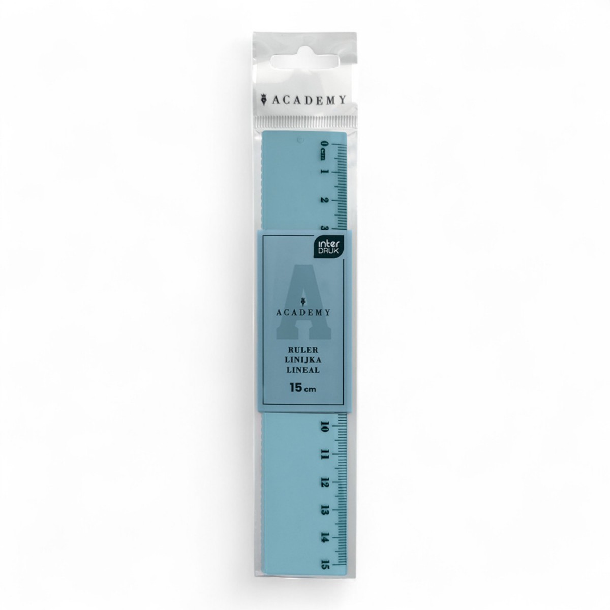 Linijka o długości 15 cm wykonana z plastiku.