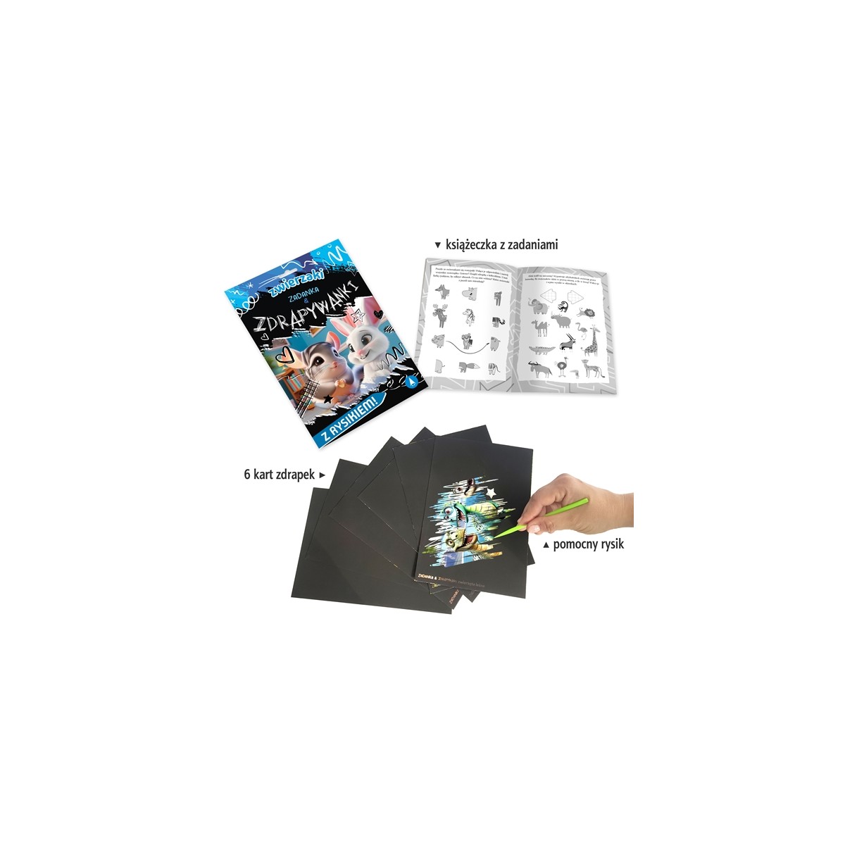 - 6 kart zdrapek, a na nich: ukryte obrazki oraz pole do wydrapania wskazanych kształtów