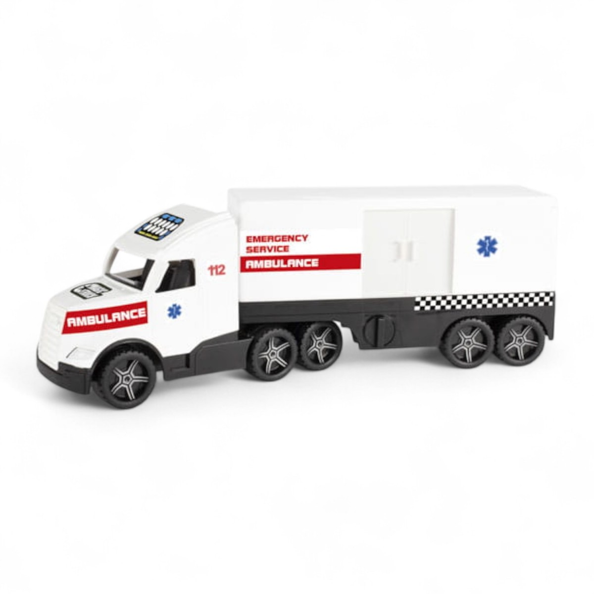 Magic Truck Action – Ambulans w kolorze białym z czerwonymi akcentami posiada skrętną skrzynię ładunkową, którą można przyczepić do pojazdu na 2 sposoby. Kontener posiada rozsuwane drzwi boczne oraz otwieraną tylną klapę, dzięki którym można do niego ładować różne przedmioty. Naczepa posiada wysuwane nóżki podporowe, które pozwalają stworzyć z niej samodzielną przyczepę.