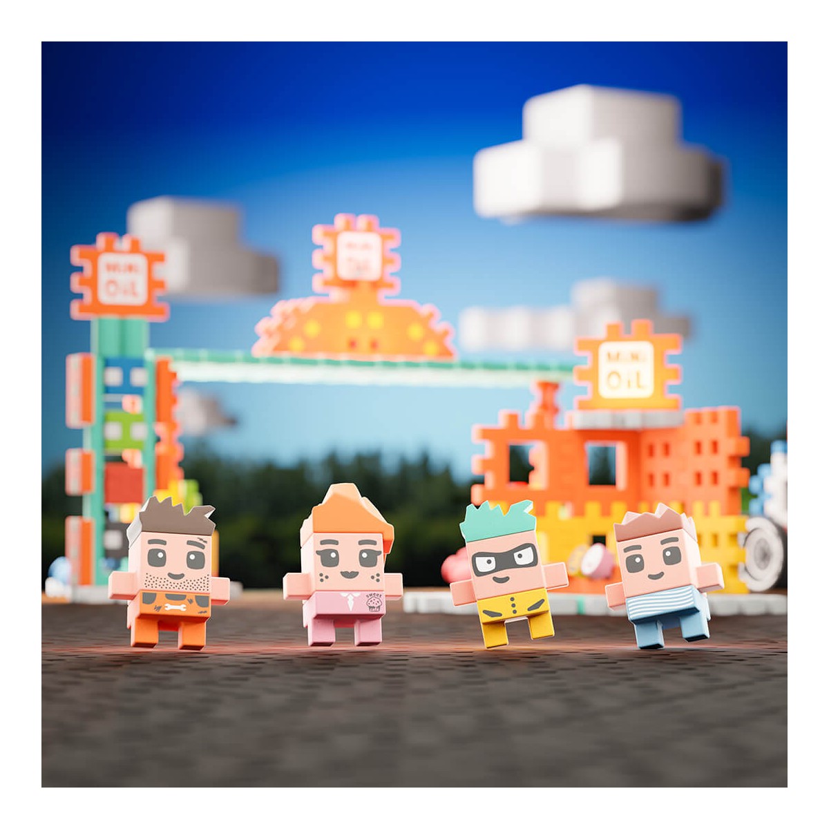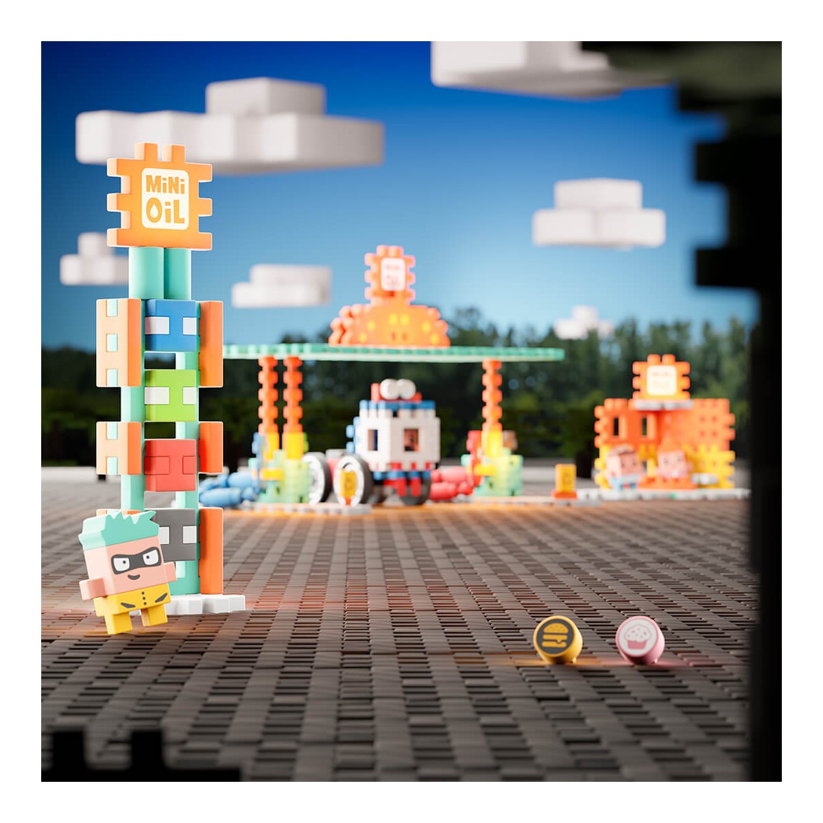 Zestaw składa się ze 148 elastycznych i miękkich w dotyku klocków, które umożliwiają budowę stacji paliw, pylonu z cenami, dystrybutorów oraz sklepu.