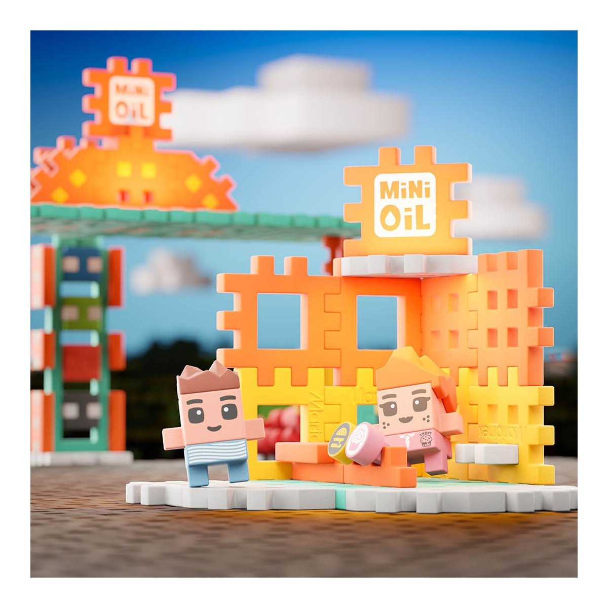 Przedstawiamy zestaw klocków Mini Waffle City: Stacja paliw od Marioinex – idealny dla małych konstruktorów pragnących stworzyć własne miasteczko!