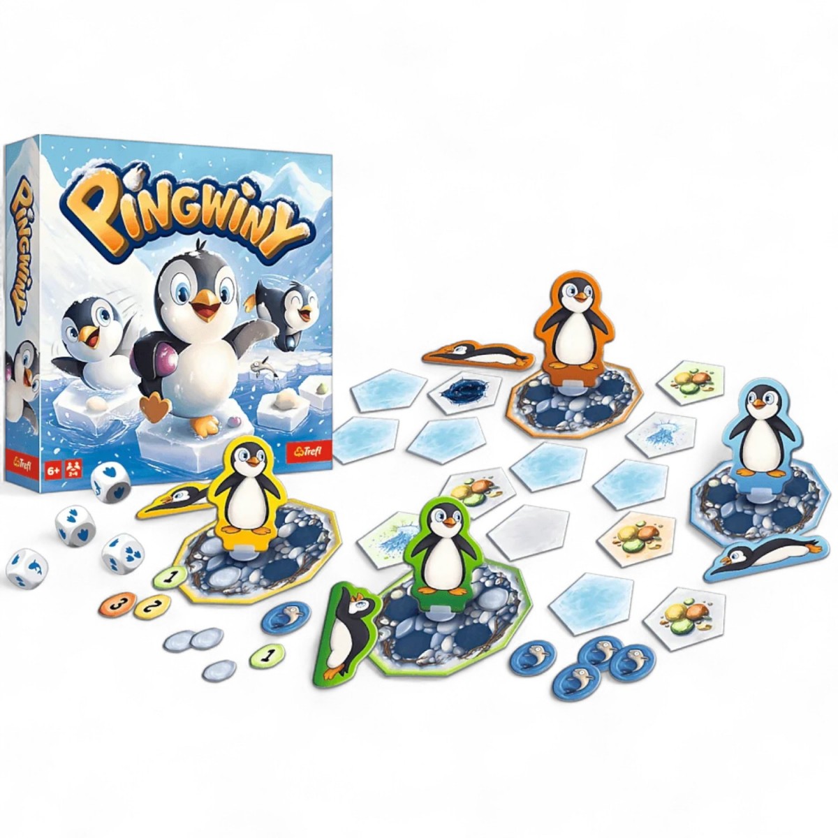 W grze rodzinnej Pingwiny przeniesiecie się do mroźnej krainy, gdzie sympatyczne pingwinki skaczą po kruchej krze w poszukiwaniu najpiękniejszych kamieni, z których zbudują swoje wymarzone gniazda. Ale uwaga – lód pod nogami jest nieprzewidywalny i za każdym razem, gdy któryś z graczy wskoczy na nowy odłamek kry, wszystko może się zmienić!