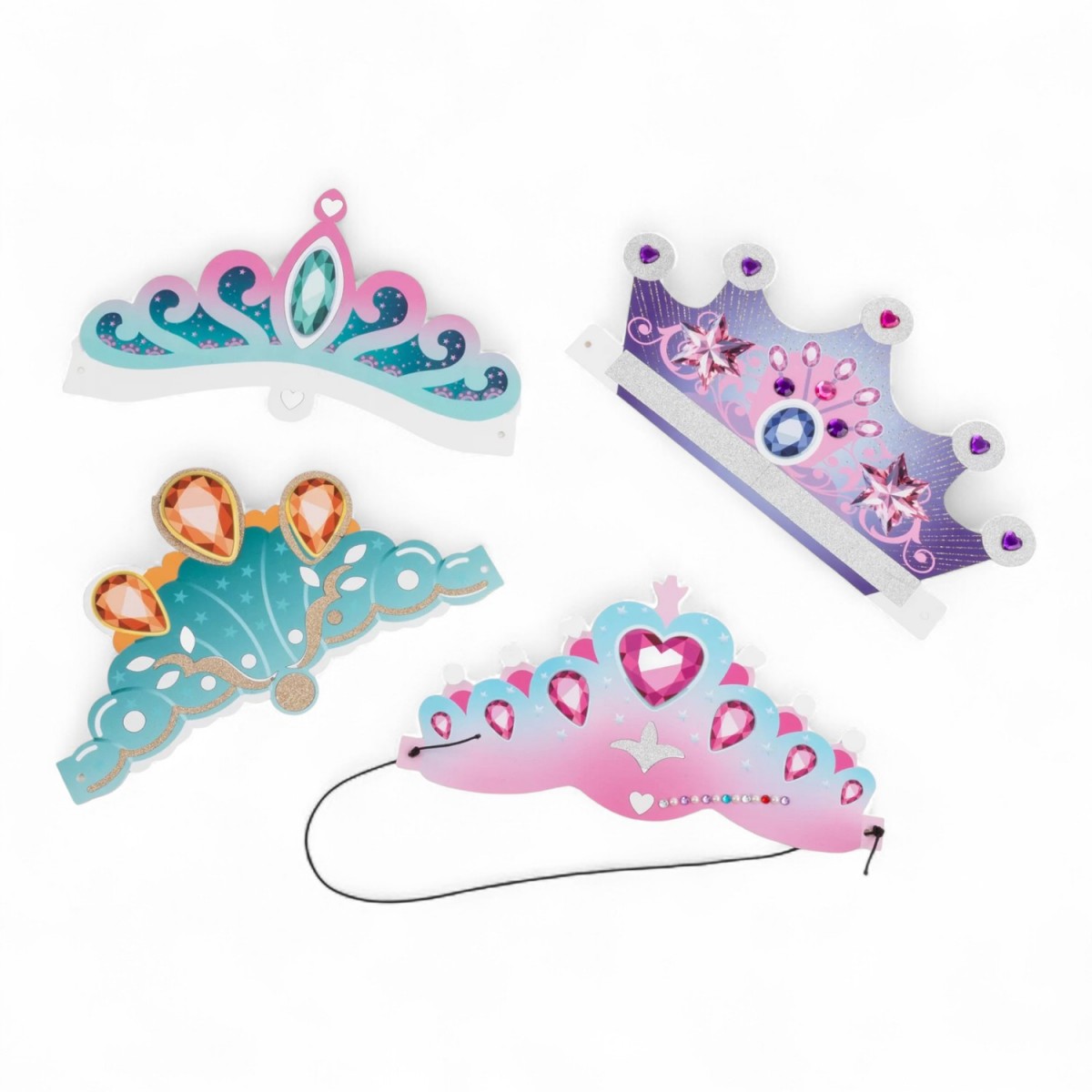 Spełnij marzenie o byciu księżniczką dzięki koronom do ozdabiania! W zestawie znajdują się przepiękne korony, które można udekorować papierem brokatowym, naklejkami oraz błyszczącymi diamencikami. Zabawa pozwala stworzyć wyjątkowe, personalizowane korony – idealne na przyjęcia urodzinowe, imprezy tematyczne czy bale przebierańców. Kreatywnie, błyszcząco i z mnóstwem frajdy! Komplet zawiera: 4 korony do ozdobienia, gumkę, 2 arkusze z brokatowymi elementami, 2 arkusze naklejek, 10 większych diamencików w kształcie serca i 10 okrągłych małych diamencików.