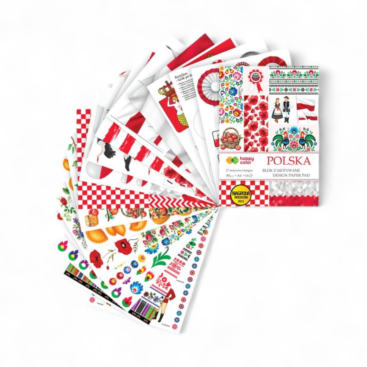Blok z motywami POLSKA, 80g/m2, A4, 16 ark,27 motywów, Happy Color