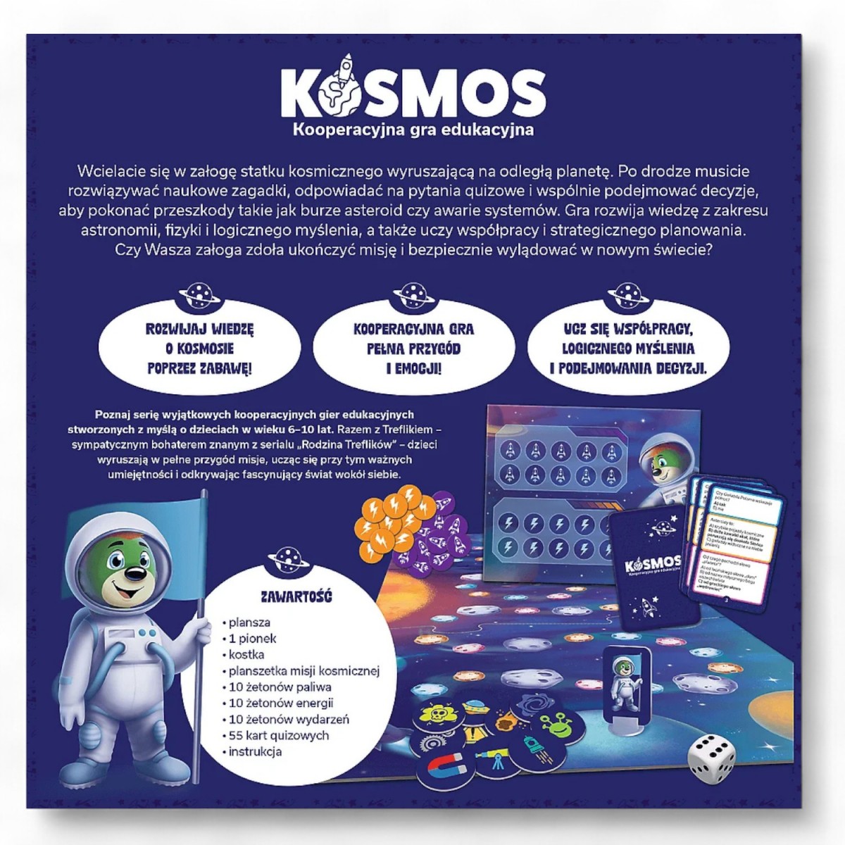 Wyrusz razem z Treflikiem i swoją załogą w niezwykłą podróż kosmiczną! Waszym celem jest dotarcie na odległą planetę – ale droga wcale nie będzie łatwa. Po drodze czekają na Was burze asteroid, awarie systemów i naukowe zagadki. Tylko dzięki współpracy, sprytowi i wiedzy uda się bezpiecznie zakończyć misję.
