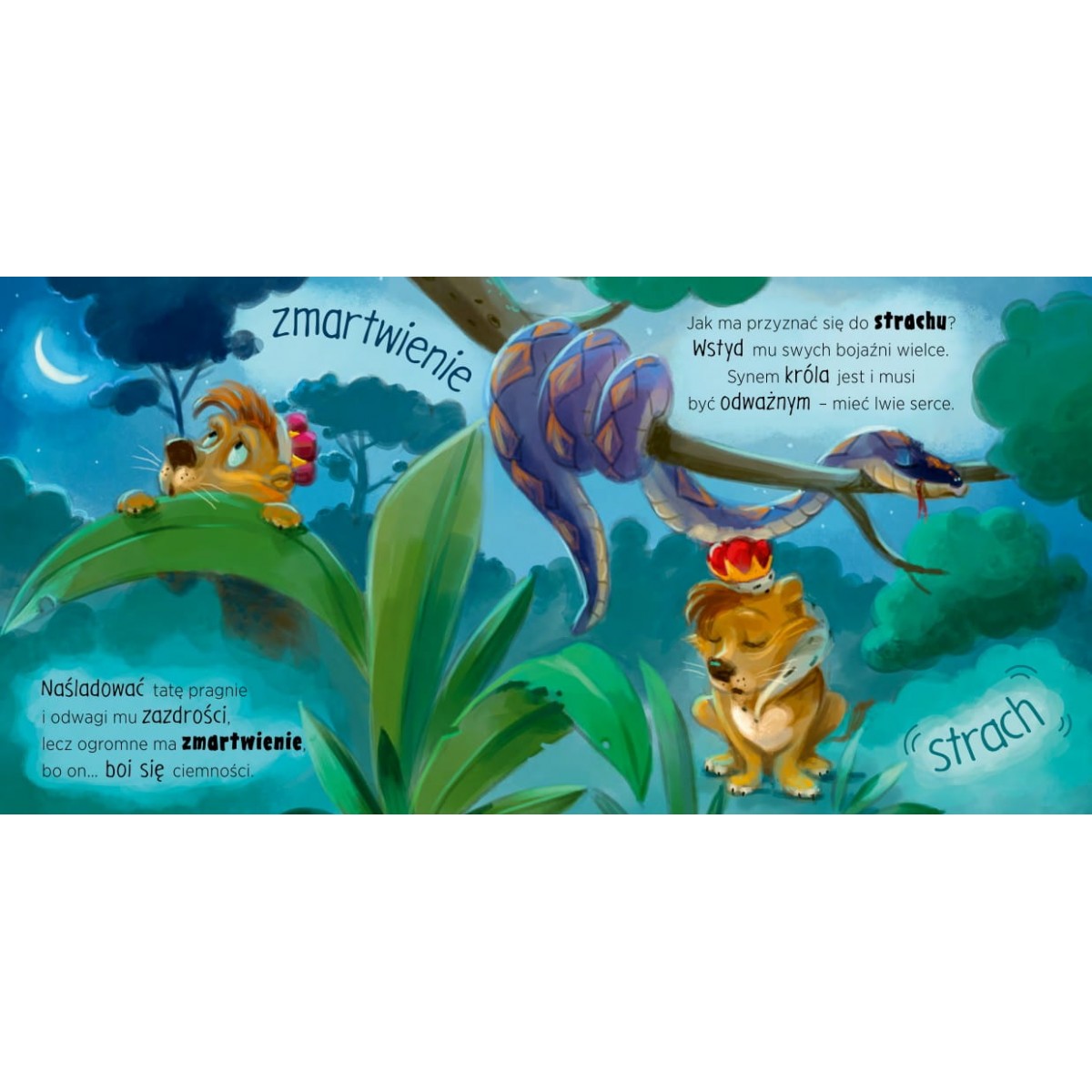 Lwiątko Książątko to historia o tym, że strach ma wielkie oczy. Dzięki ciepłej, wierszowanej fabule oraz wyrazistym ilustracjom, maluchy mogą lepiej zrozumieć emocje bohaterów i wprowadzić się w świat wartości. Ilustracje doskonale oddają przeżycia lwiątka, co sprawia, że książka angażuje dziecko na różnych poziomach.