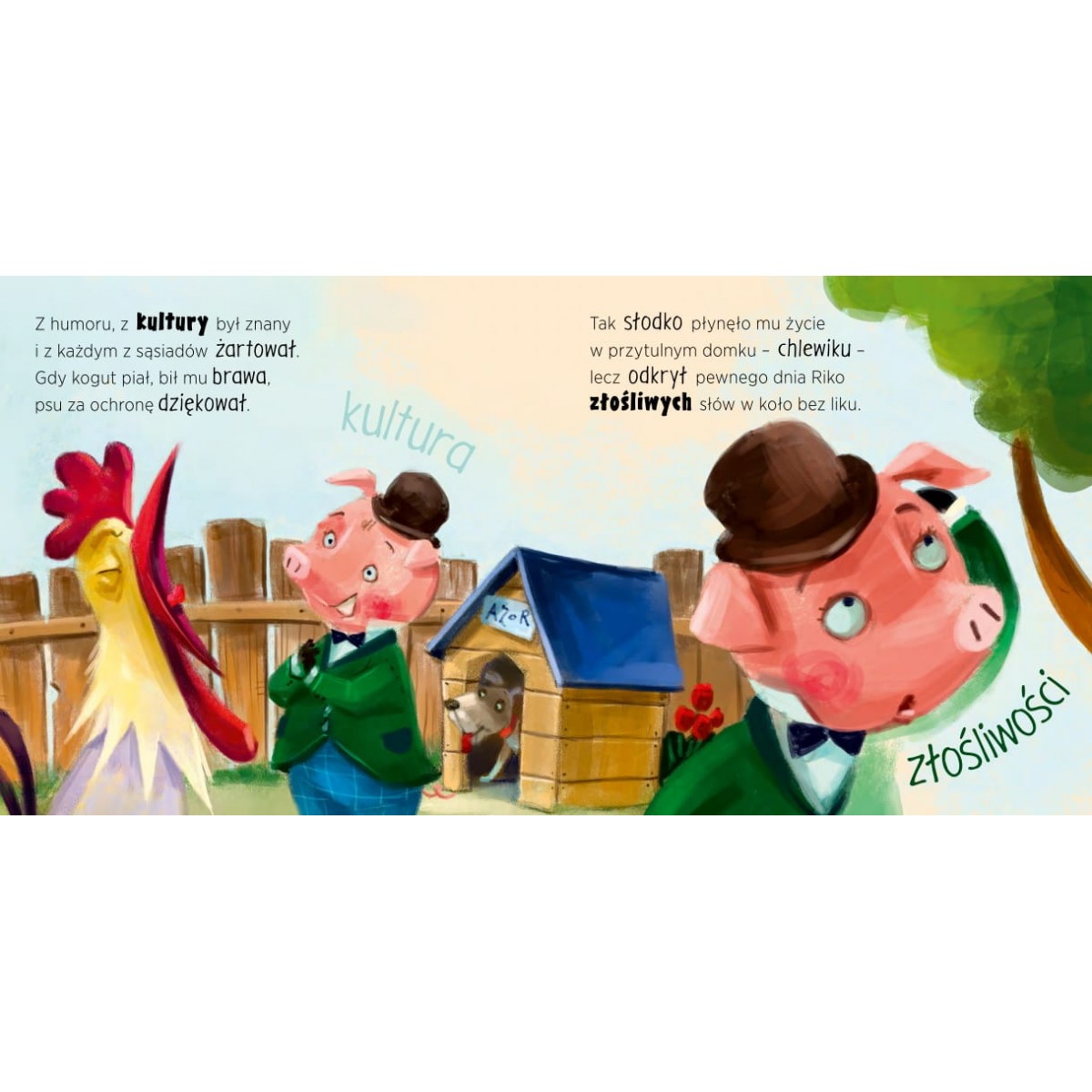 Zabawna opowieść z morałem o prosiaczku, który bardzo dbał o swój wygląd, przełamując stereotypy. Książeczka, zawierająca wpadającą w ucho rymowankę oraz pełne humoru ilustracje, urzeka dzieci i rodziców. Treść książki jest przystępna dla kilkulatka i porusza bardzo ważne tematy, takie jak wartości, emocje i relacje międzyludzkie.