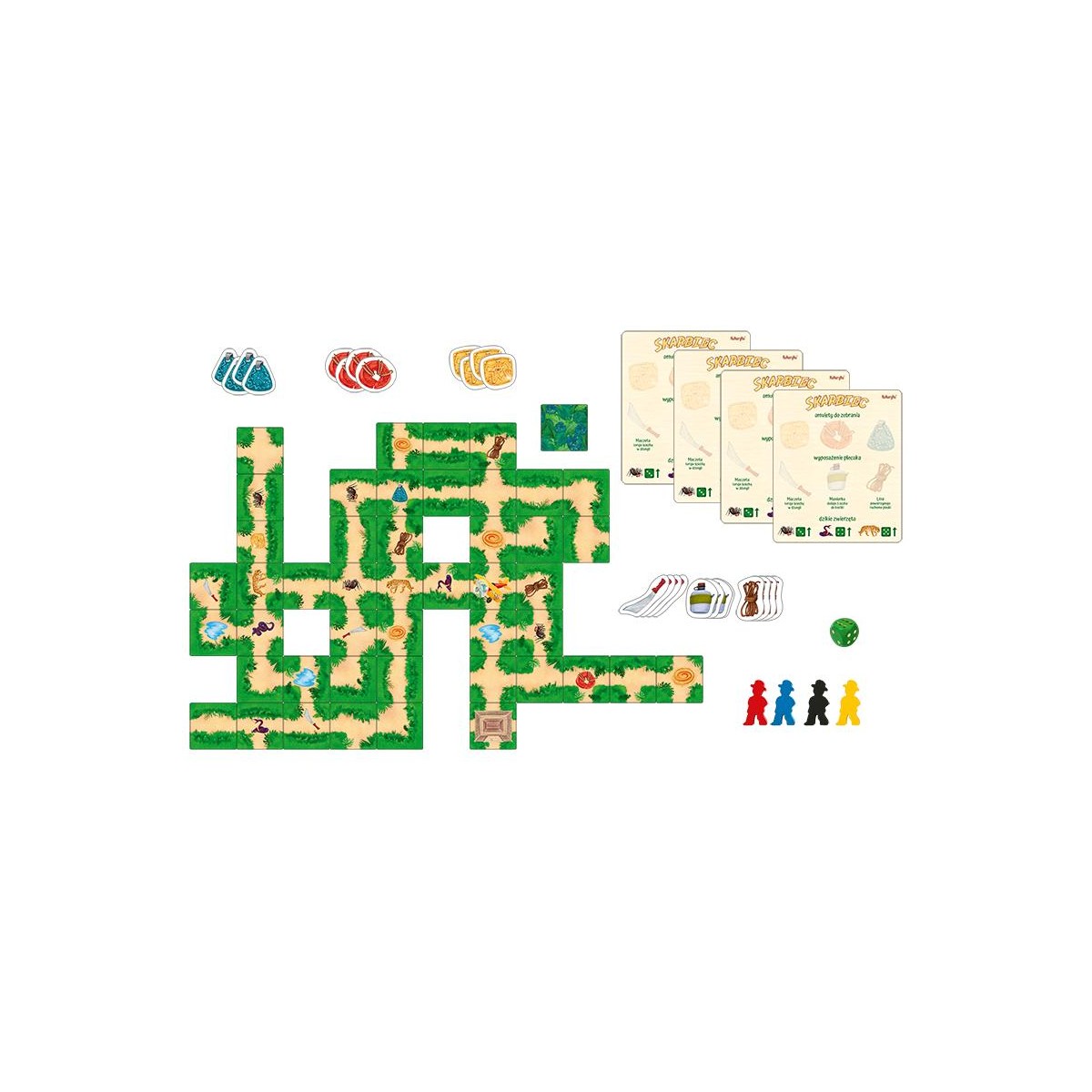 Zawartość pudełka • 48 płytek • 12 amuletów w trzech kolorach • 12 żetonów maczety, manierki, liny • 4 pionki poszukiwaczy • kostka do gry • 4 karty gracza • zasady gry