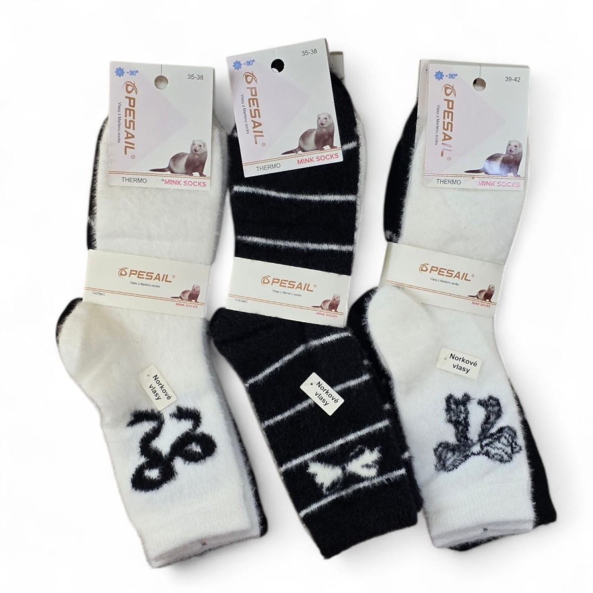 • <p>Rozmiar: 35-38 oraz 39-42 </p> <p>Skład:</p> <ul> <li>Włosy z norki 90%</li> <li>Bawełna 5%</li> <li>Akryl 5%</li> </ul> <p>Sprzedawane w 2-paku w mixie kolorystycznym </p> <p>W opakowaniu zbiorczym 24 pary.</p> <p>Cena za parę.</p>