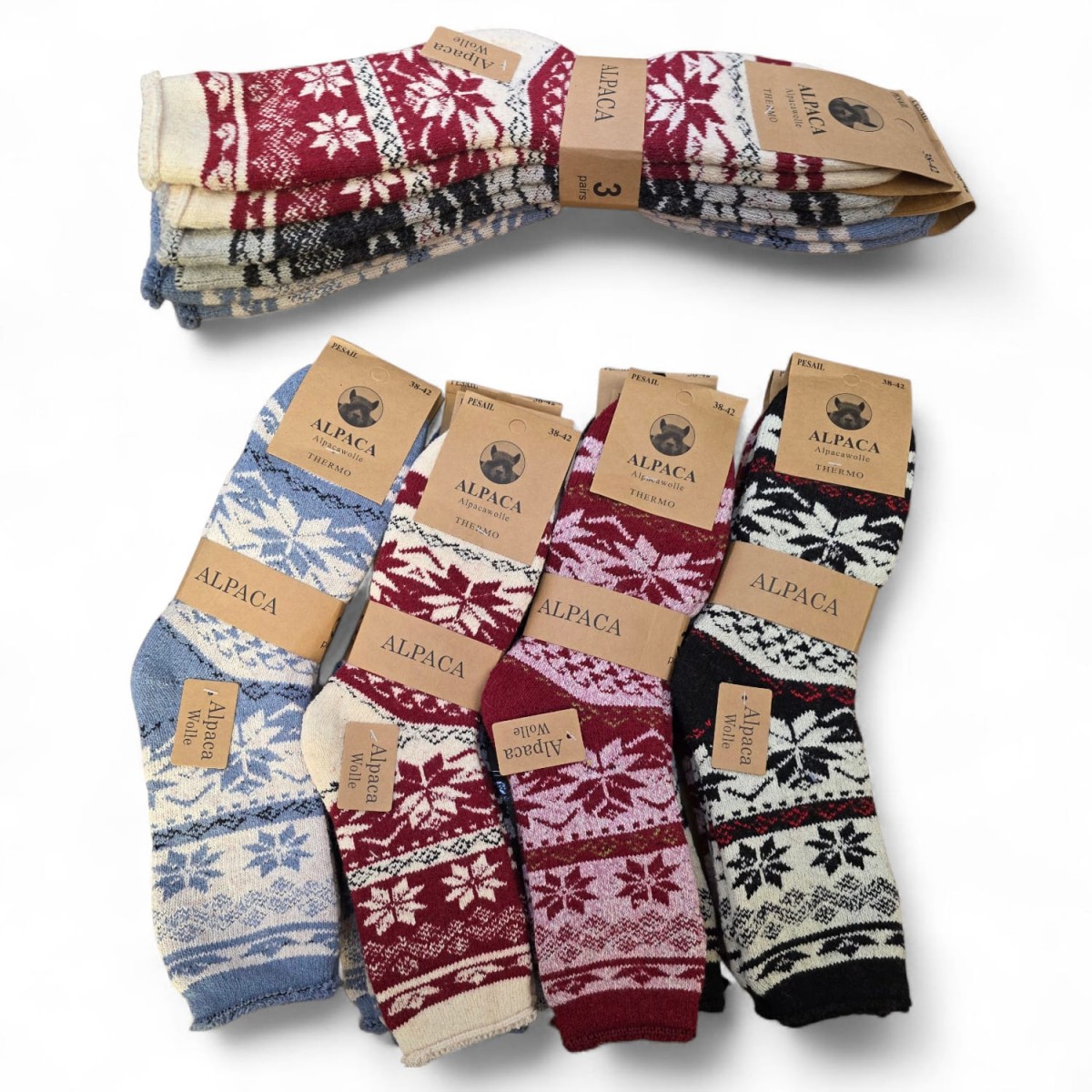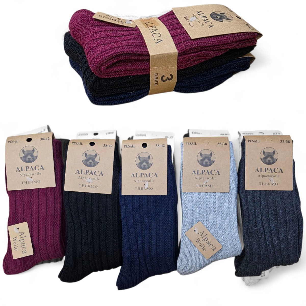 • <p>Rozmiar: 35-38 oraz 38-42</p> <p>Skład:</p> <ul> <li>Alpaka 90%</li> <li>Bawełna 5%</li> <li>Akryl 5%</li> </ul> <p>Sprzedawane w 3-paku w mixie kolorystycznym </p> <p>W opakowaniu zbiorczym 24 pary</p> <p>Cena za parę.</p>
